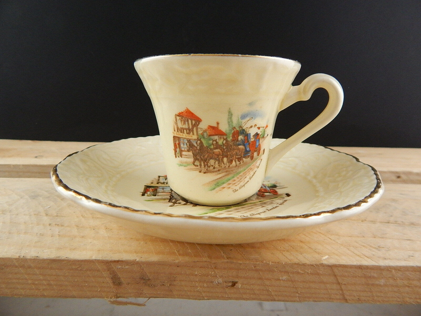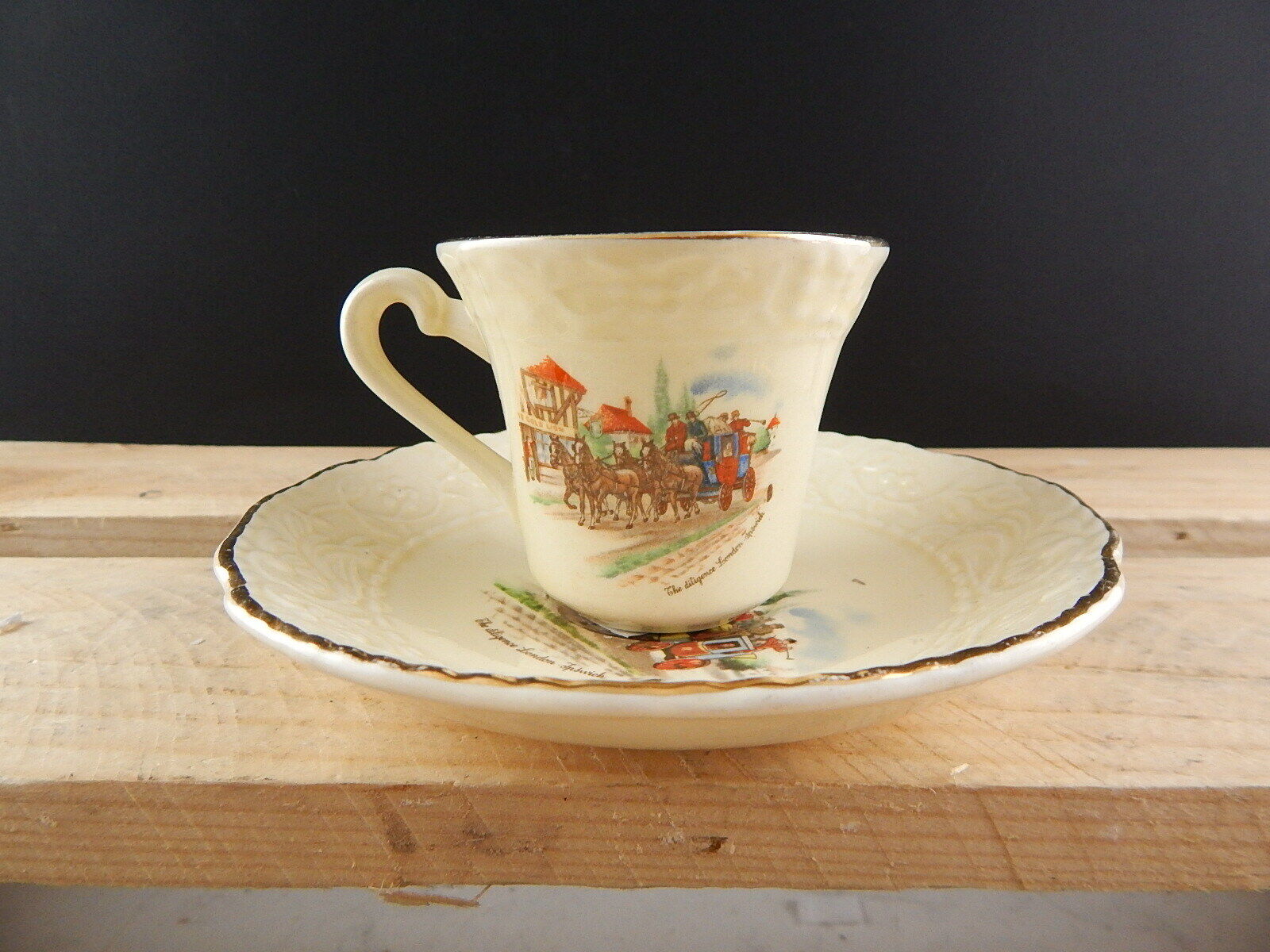 ANTICA TAZZINA CON PIATTINO CERAMICA CCB IMPERIAL CROWN IVORY STONE LA DILIGENZA
