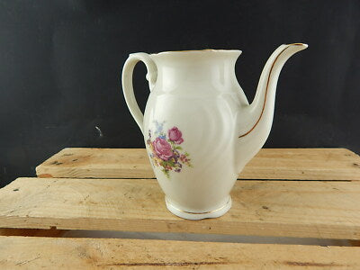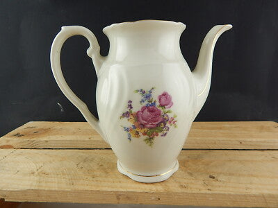 In questa inserzione viene presentata una teiera o caffettiera senza coperchio in porcellana colore avorio con decori floreali policromi realizzata dalla manifattura tedesca Bavaria Winterling