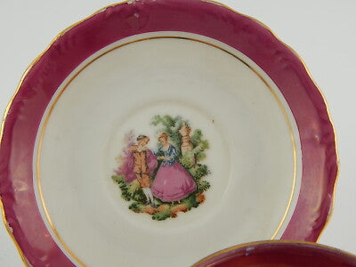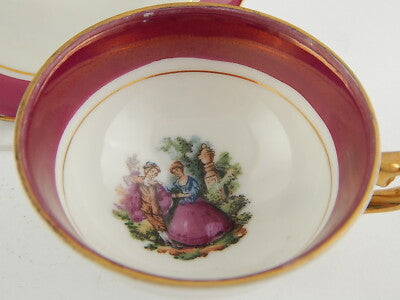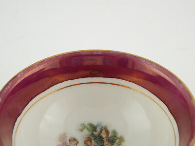 ANTICA VECCHIA PARIGI TAZZINA+PIATTO PORCELLANA SCENA GALANTE VIEUX PARIS