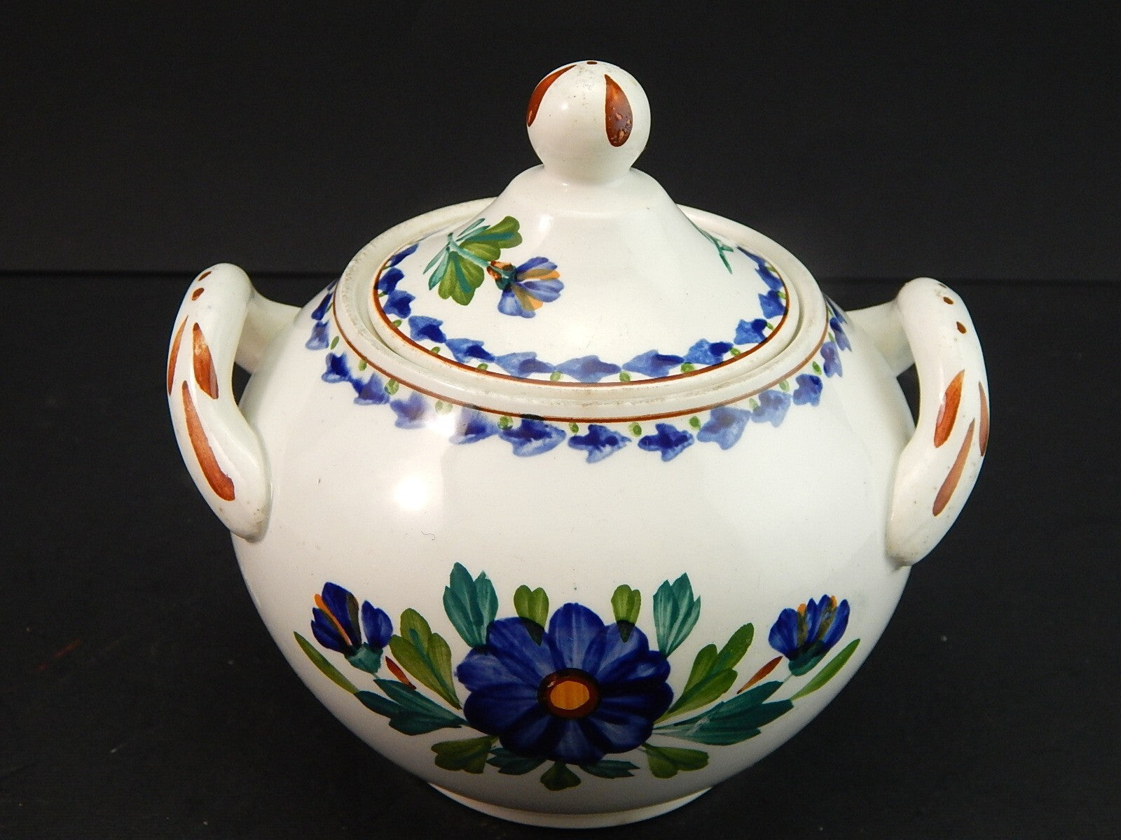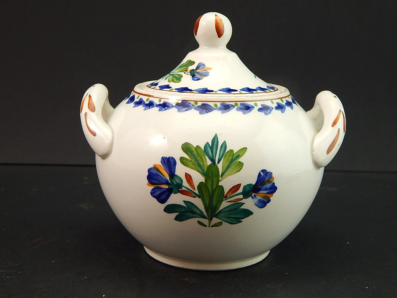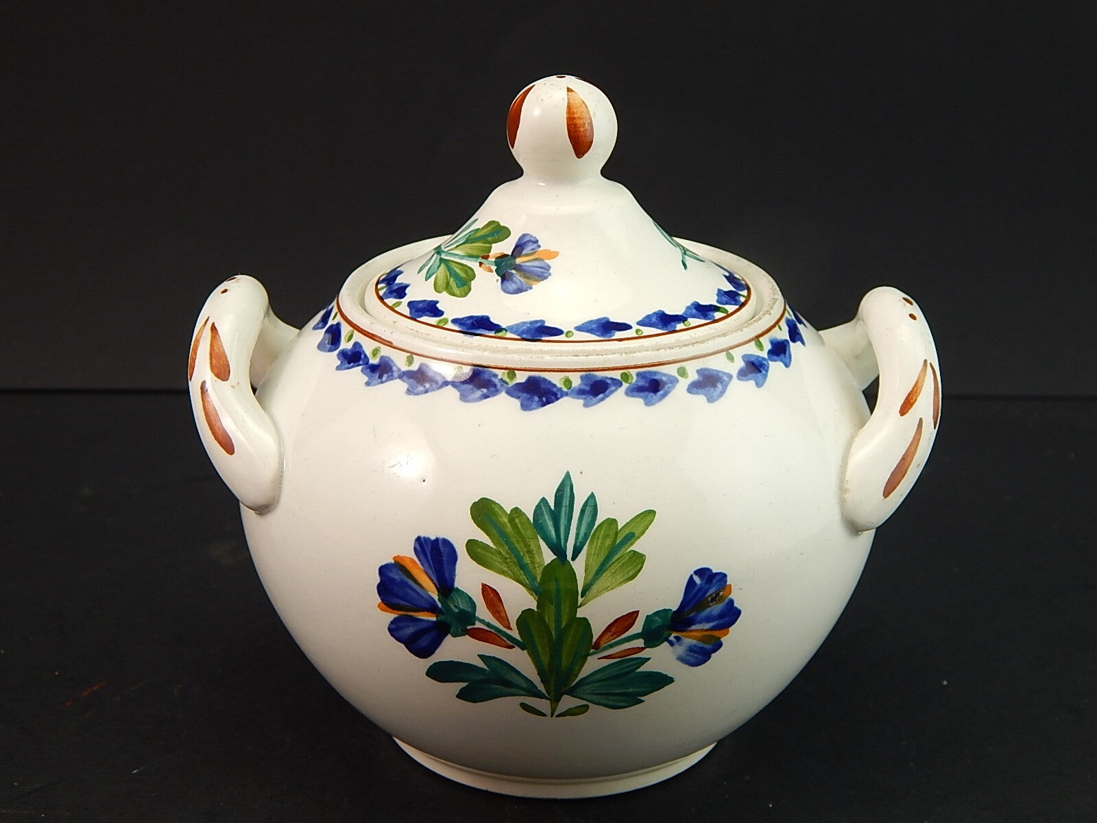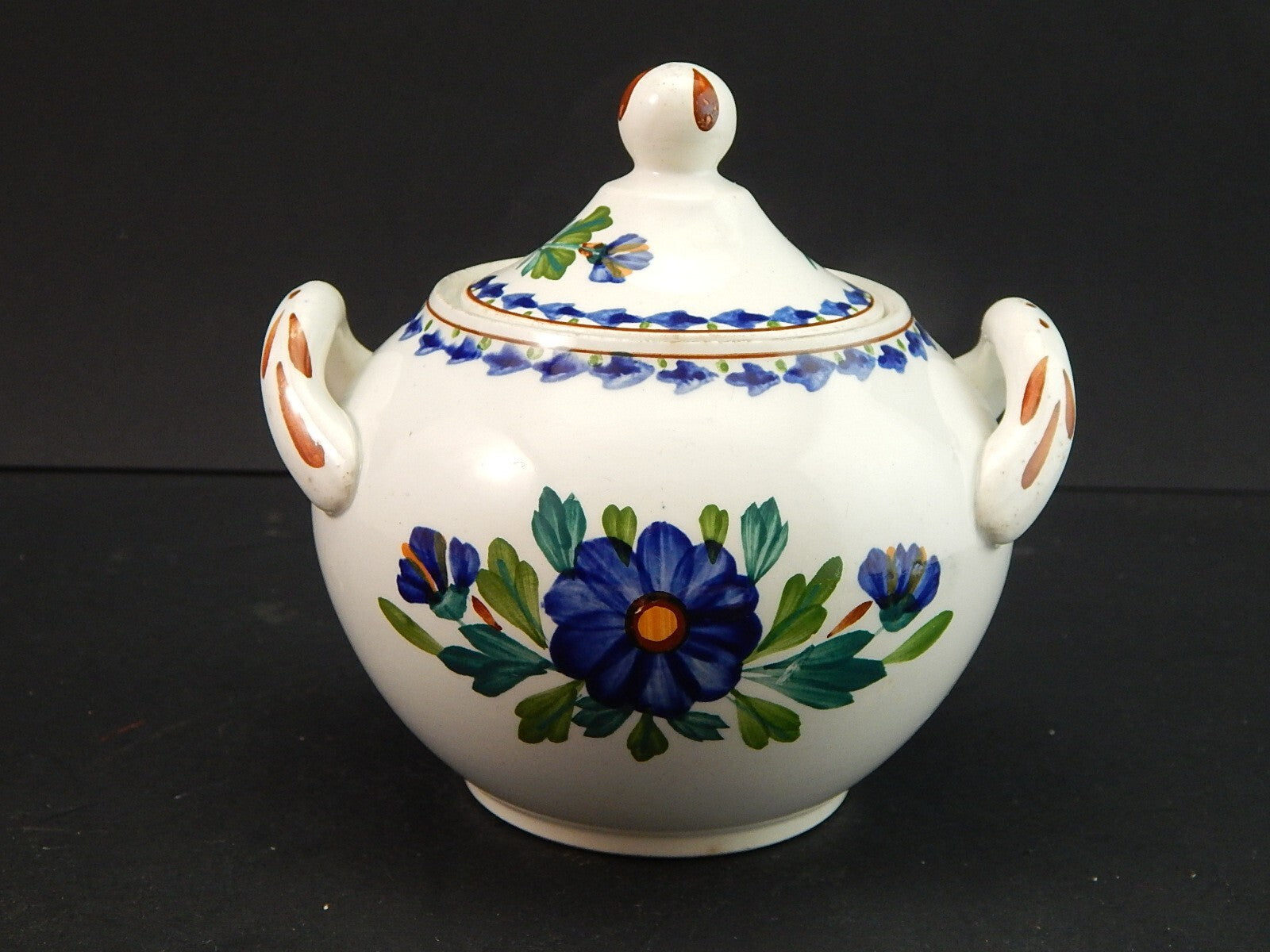ANTICA ZUCCHERIERA CERAMICA SARREGUEMINES DIPINTA A MANO IN POLICROMIA