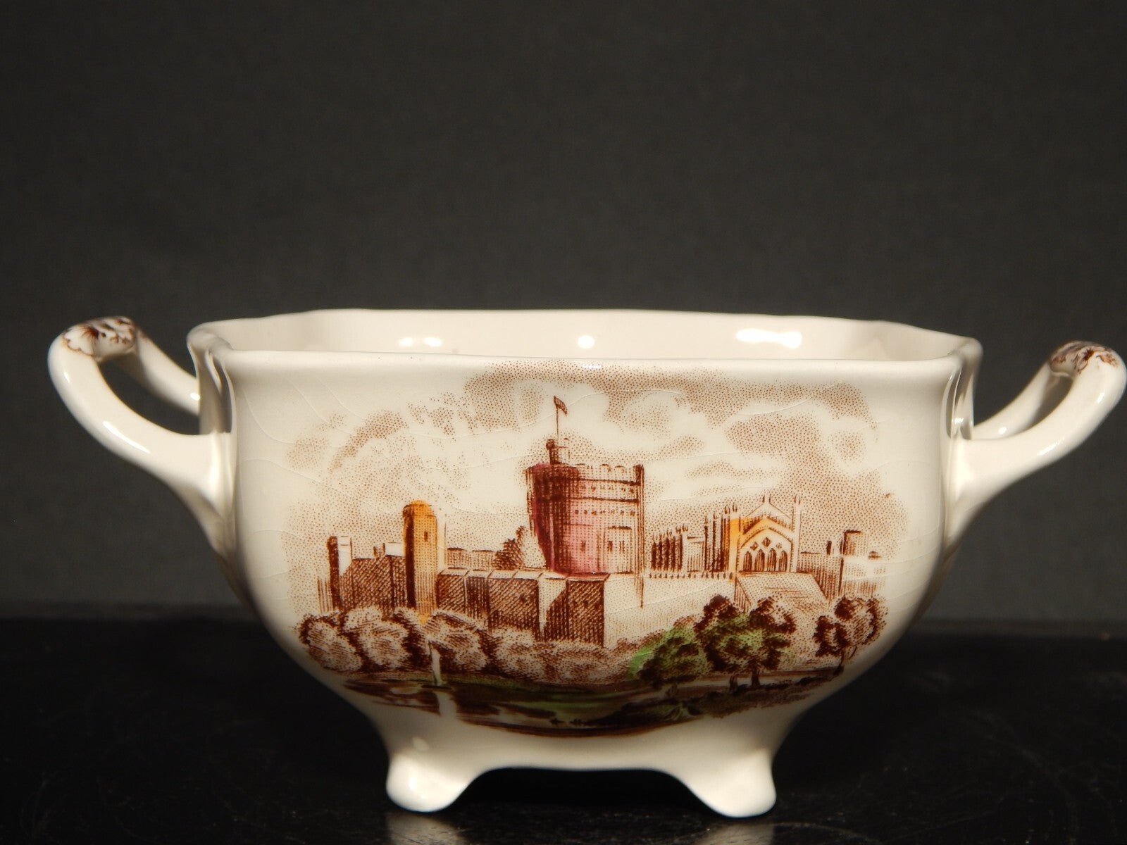 In questa inserzione viene presentata una zuccheriera antica realizzata dalla famosa Manifattura inglese Johnson Bros della collezione Royal Homes of Britain