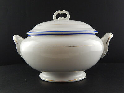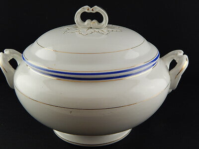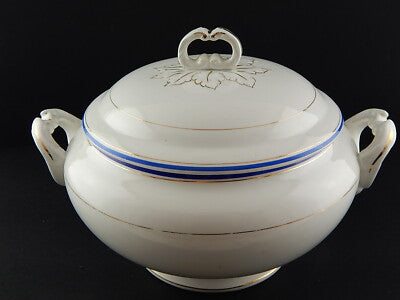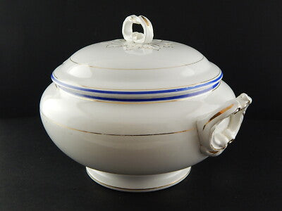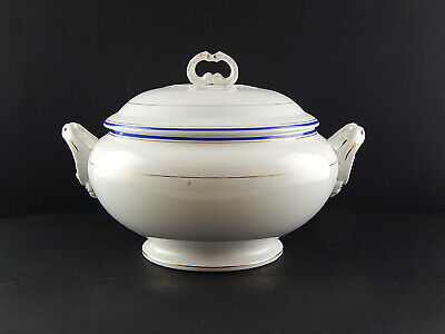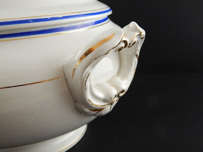 ANTICA ZUPPIERA IMPERO CERAMICA ITALIANA LAVENO VERBANUM STONE BIANCA BLU E ORO