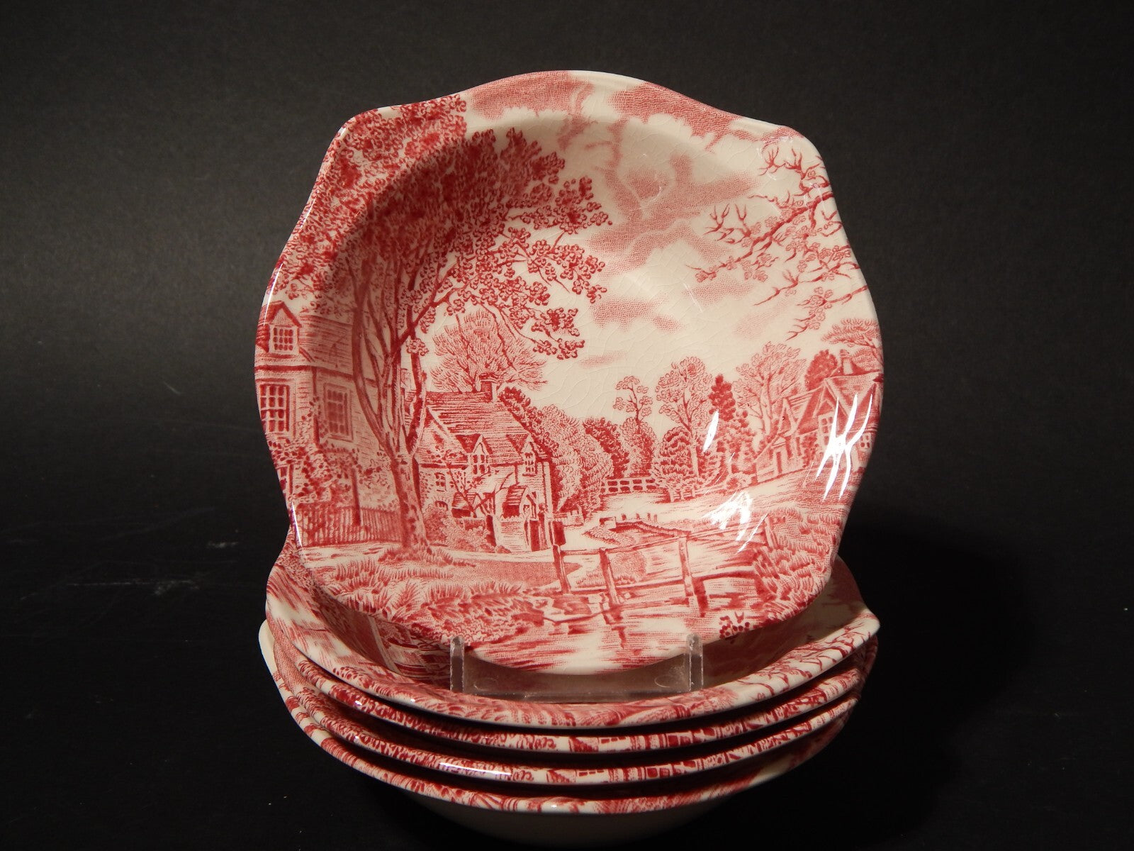 ANTICHE JOHNSON BROS 5 CIOTOLE MACEDONIA SEMI PORCELLANA DECORO COTSWOLD ROSSO