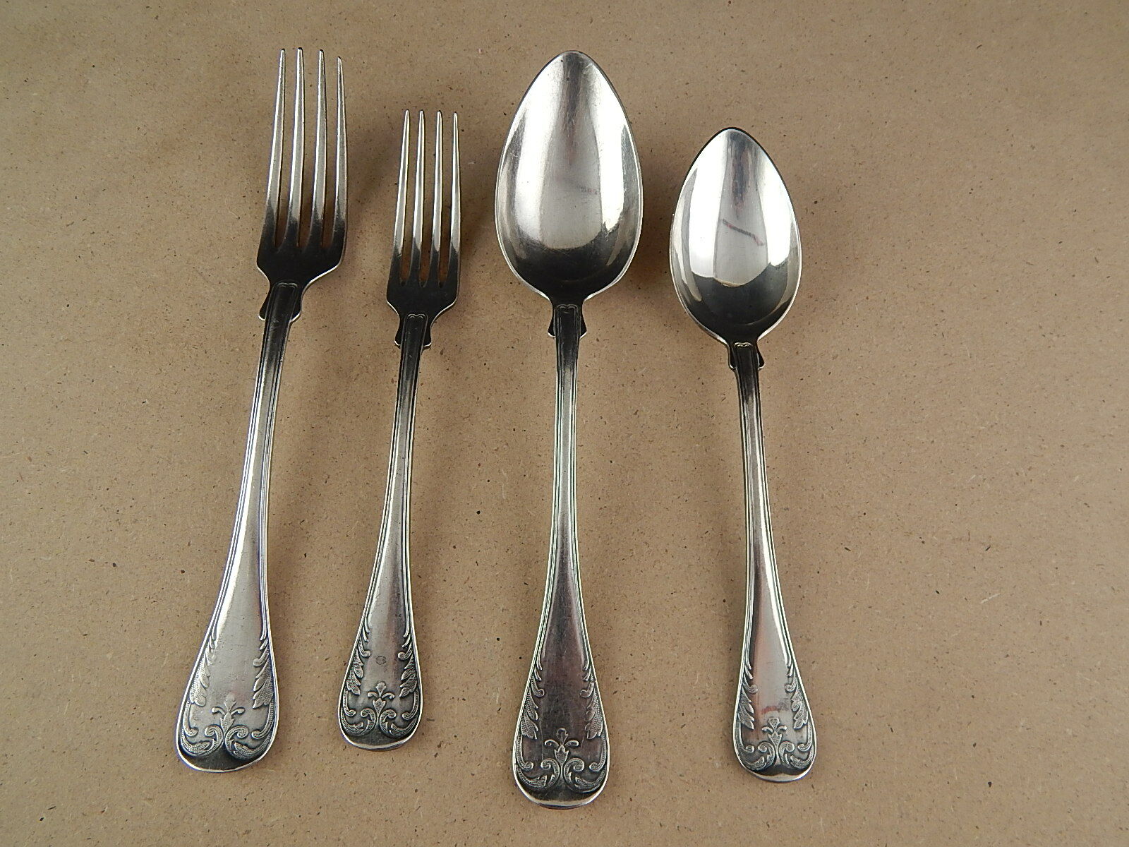 ANTICHE 4 POSATE ALPACCA ARGENTATE CESELLATE LIBERTY GAG SILVER