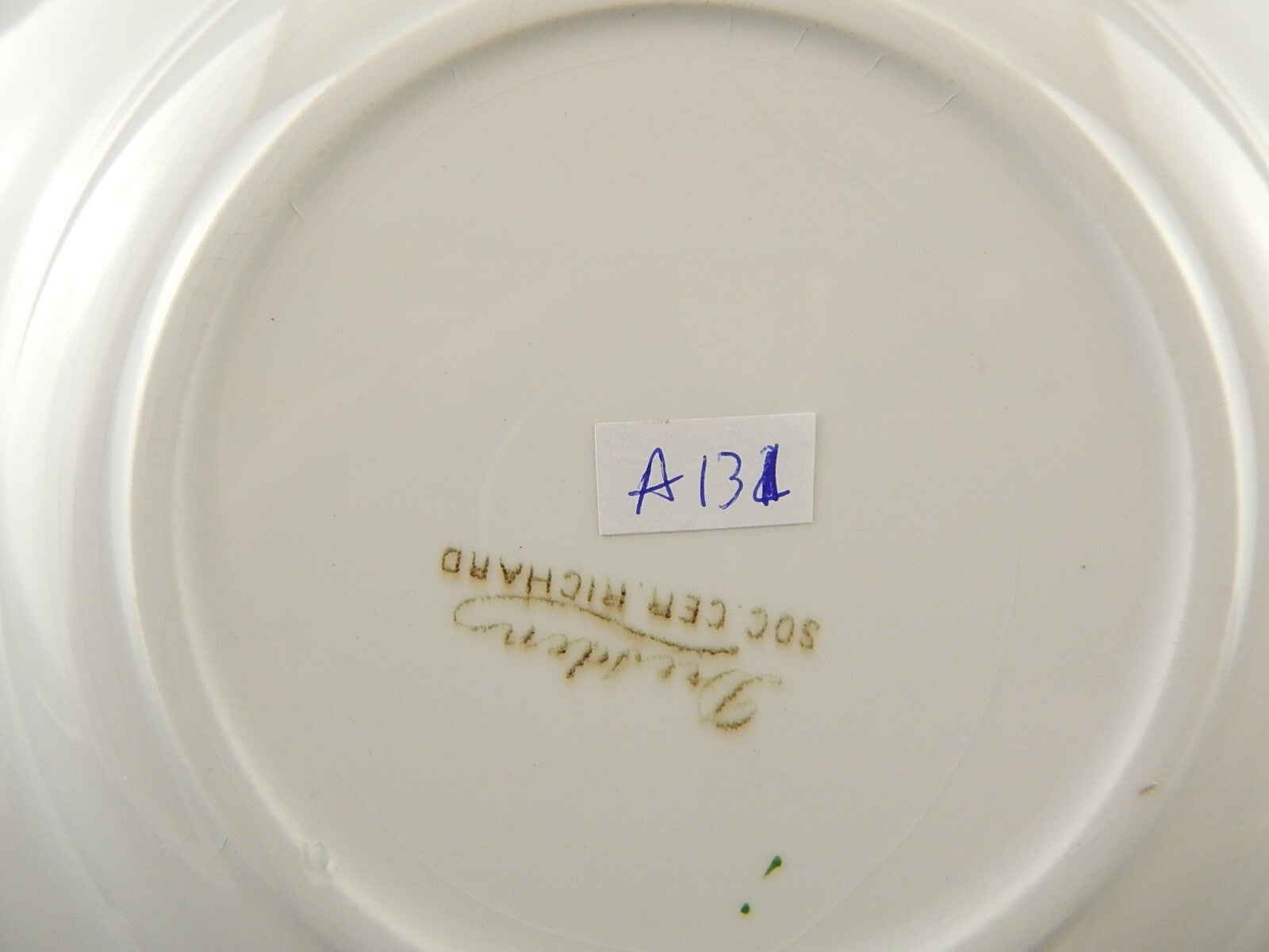 In questa inserzione viene presentato un antico piatto in ceramica realizzato dalla manifattura milanese S. C. Richard risalente alla fine del 1800 decorato con il rarissimo disegno Dresden.