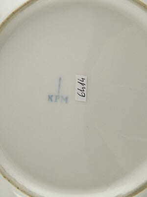 In questa inserzione viene presentato un vassoio antico o piatto con manici in porcellana di altissima qualità decorato con una ghirlanda di rose policroma e oro zecchino, realizzato dalla manifattura tedesca Kpm di Berlino negli anni tra il 1837 e 1844 come si evince dal marchio