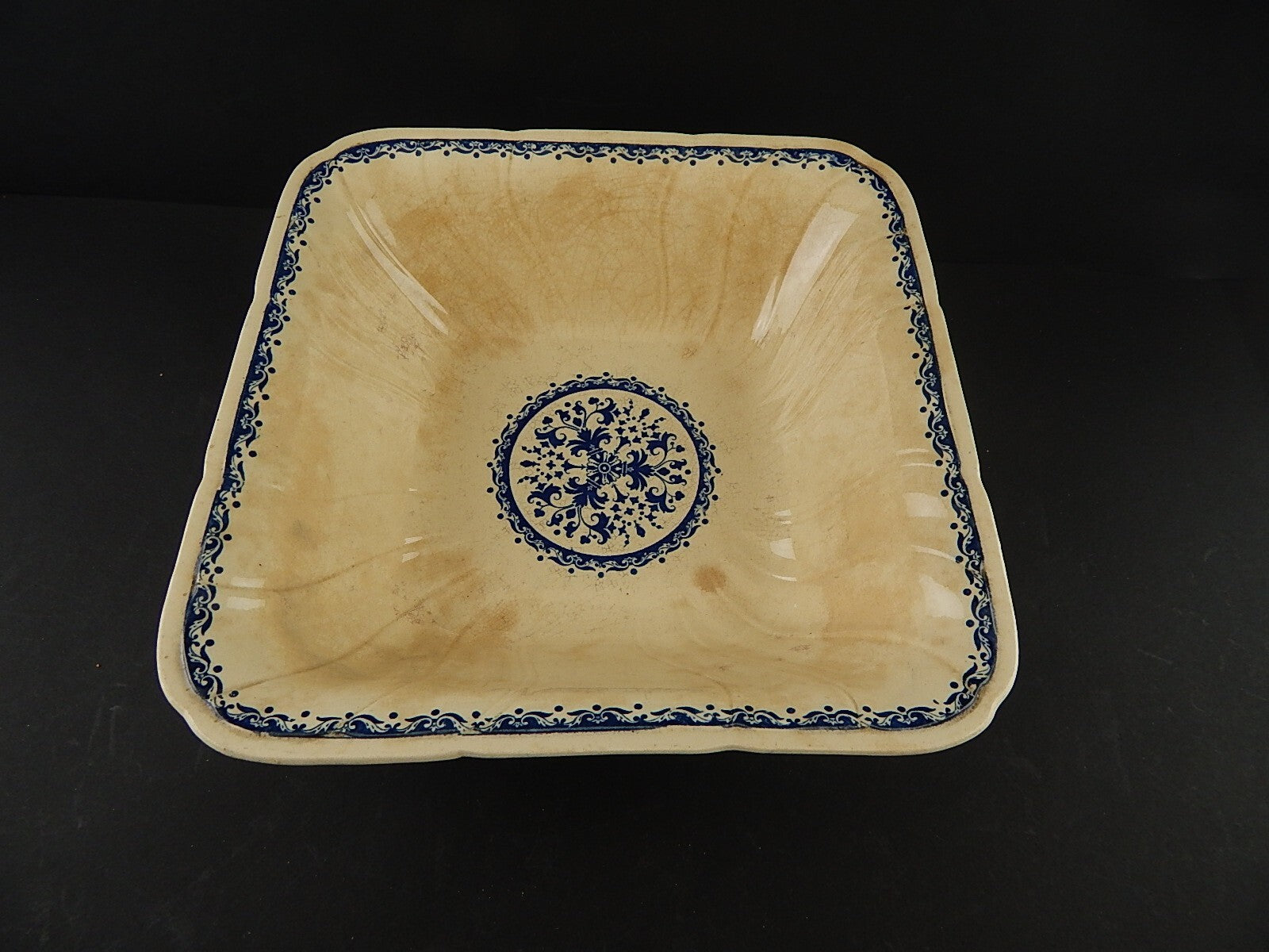 ANTICO 1875 CENTROTAVOLA CERAMICA PORCELLANA OPACA GIEN DECORO BLU ALLA ROUEN