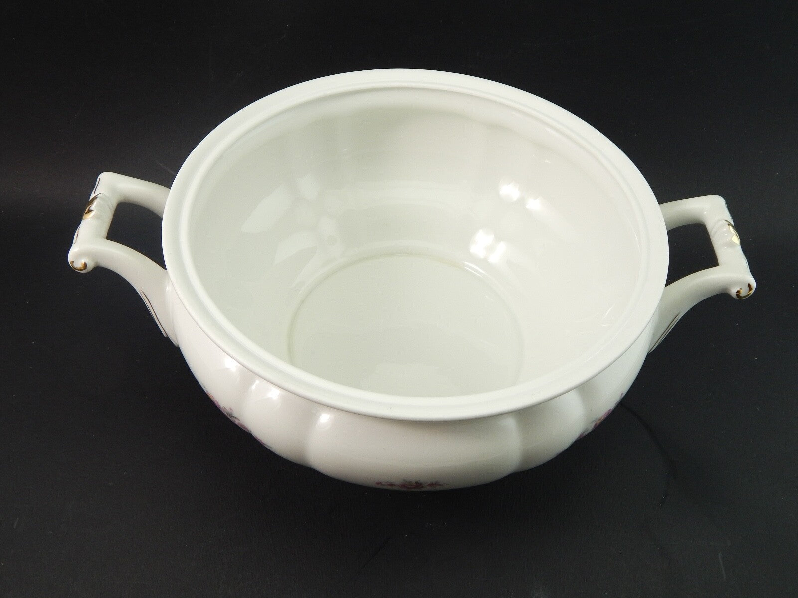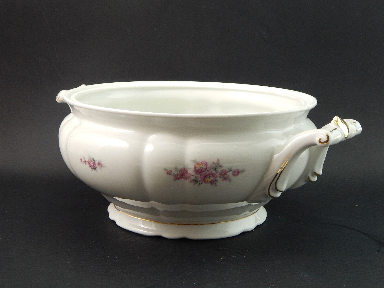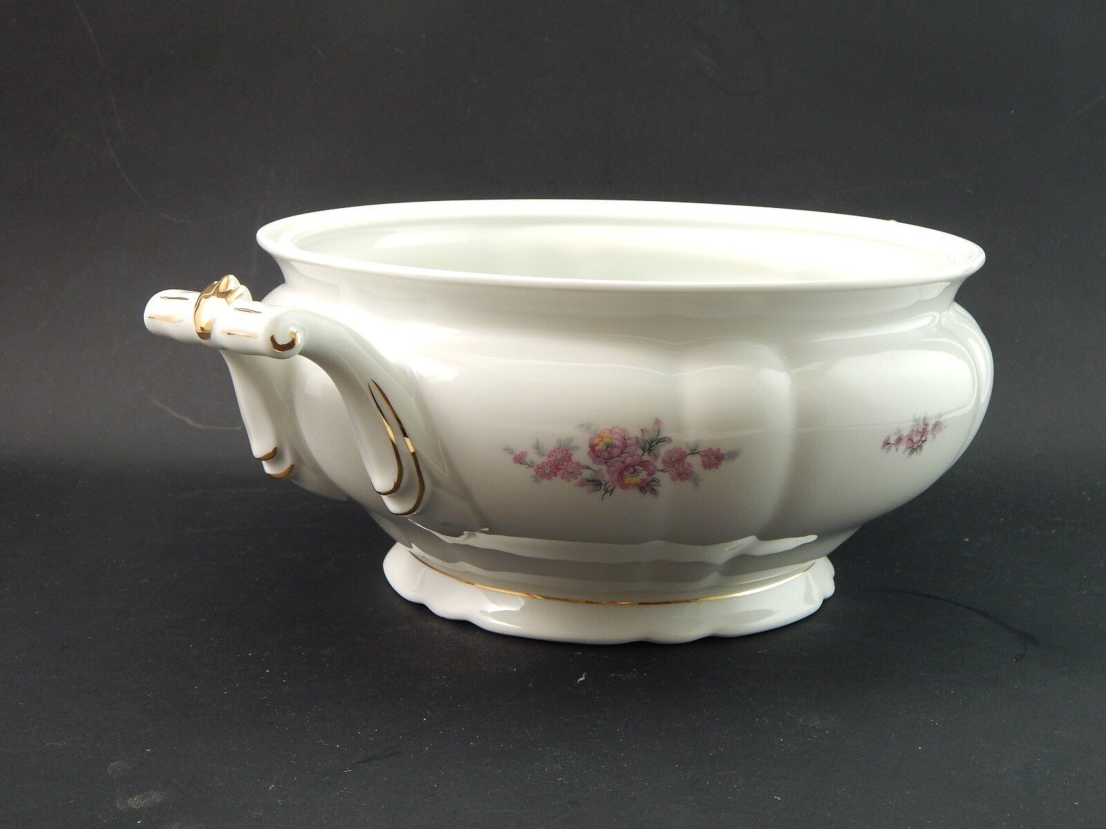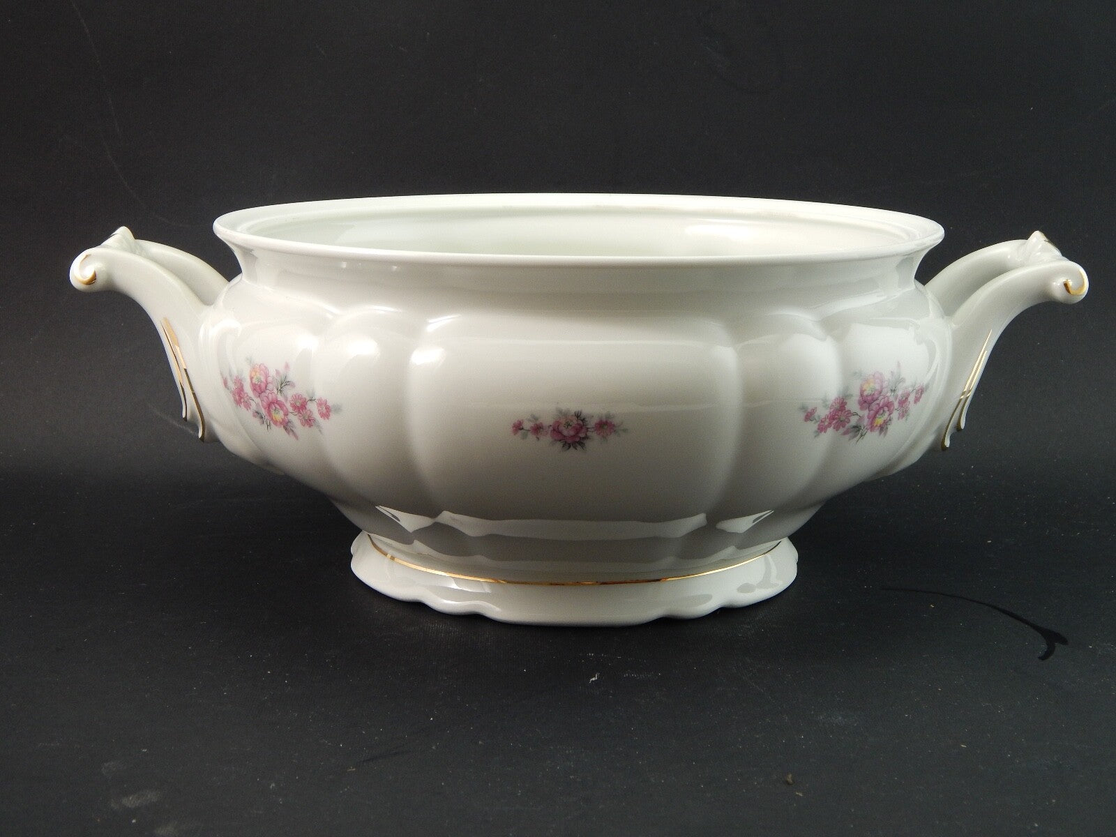 In questa inserzione viene presentato un antico centrotavola o fruttiera realizzato dalla manifattura di Laveno nel 1935 (periodo in cui alla direzione della fabbrica c'era Andloviz). Il centrotavola in porcellana bianca è decorato a mano con fiorellini sui toni del rosa e rifinito in oro zecchino