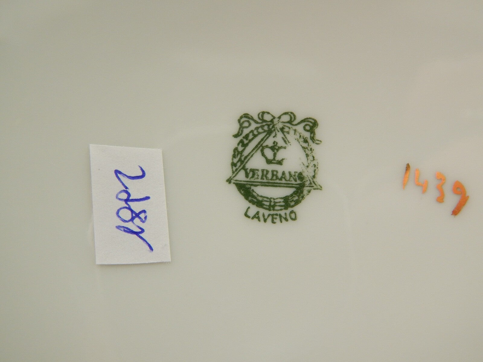 Il marchio stampato sui piatti è quello che veniva usato dallo stabilimento creato nel 1930, che per molto tempo collaborò anche con la famosa fabbrica tedesca Rosenthal, per realizzare oggetti in porcellana più raffinati rispetto a quelli in terraglia che venivano prodotti nell'altro stabilimento Verbanum Stone.