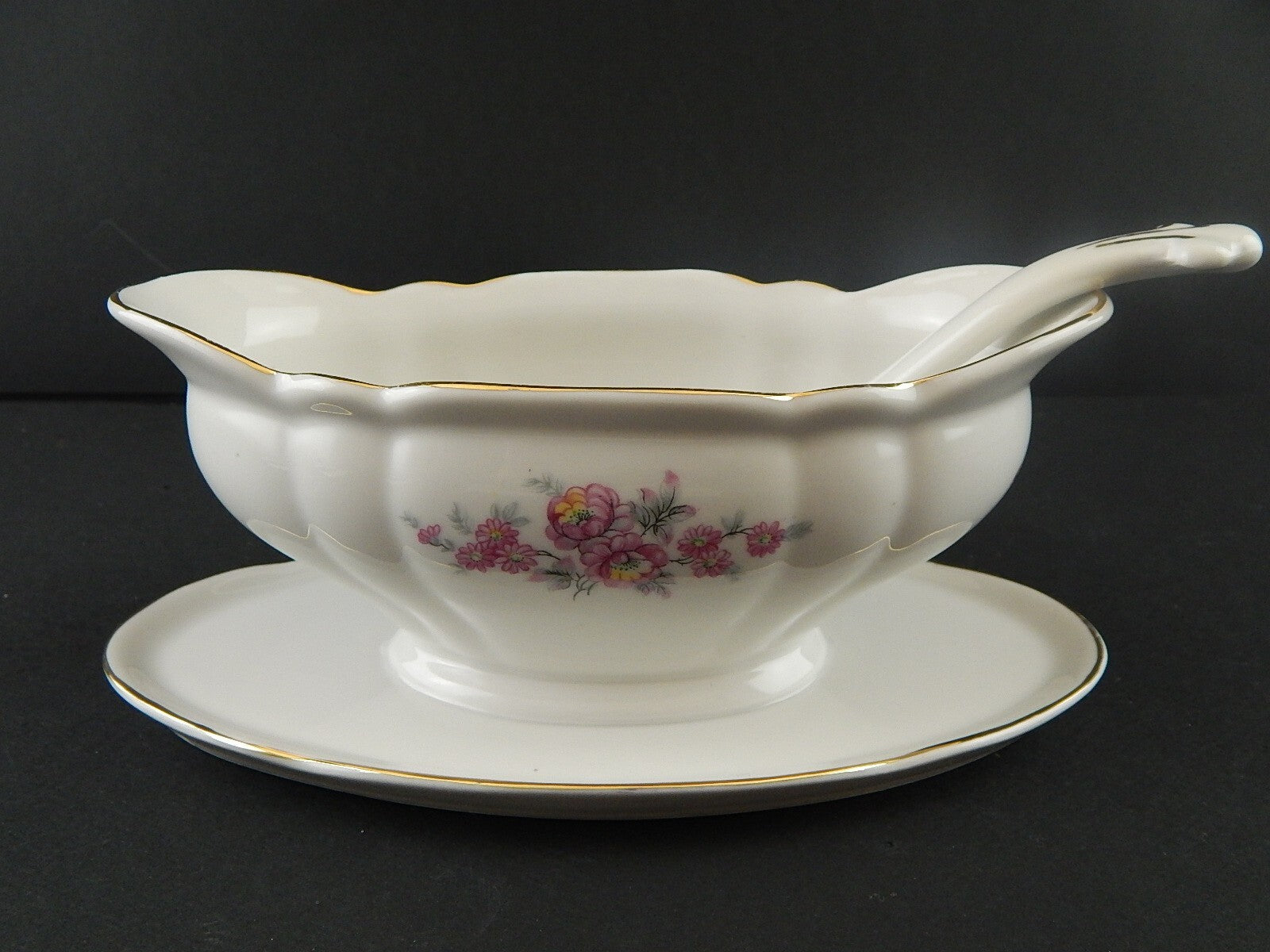 Una salsiera con cucchiaio che misura 19 x 10,5 cm e 8 cm di altezza il piatto alla base misura 21 x 12 cm.