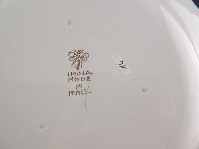 In questa inserzione viene presentato un antico piatto in ceramica risalente al 1946, realizzato in Italia dalla manifattura di ceramiche di Imola secondo le antiche tecniche dei maestri ceramisti italiani del 1700