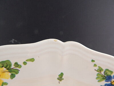 Il piatto è stato realizzato al tornio e dipinto a mano, misura 24 cm di diametro, come si può vedere dalle foto ha una minima scheggiatura sul bordo