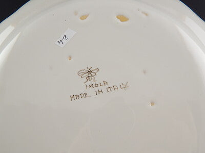 In questa inserzione viene presentato un antico piatto in ceramica risalente al 1946, realizzato in Italia dalla manifattura di ceramiche di Imola secondo le antiche tecniche dei maestri ceramisti italiani del 1700