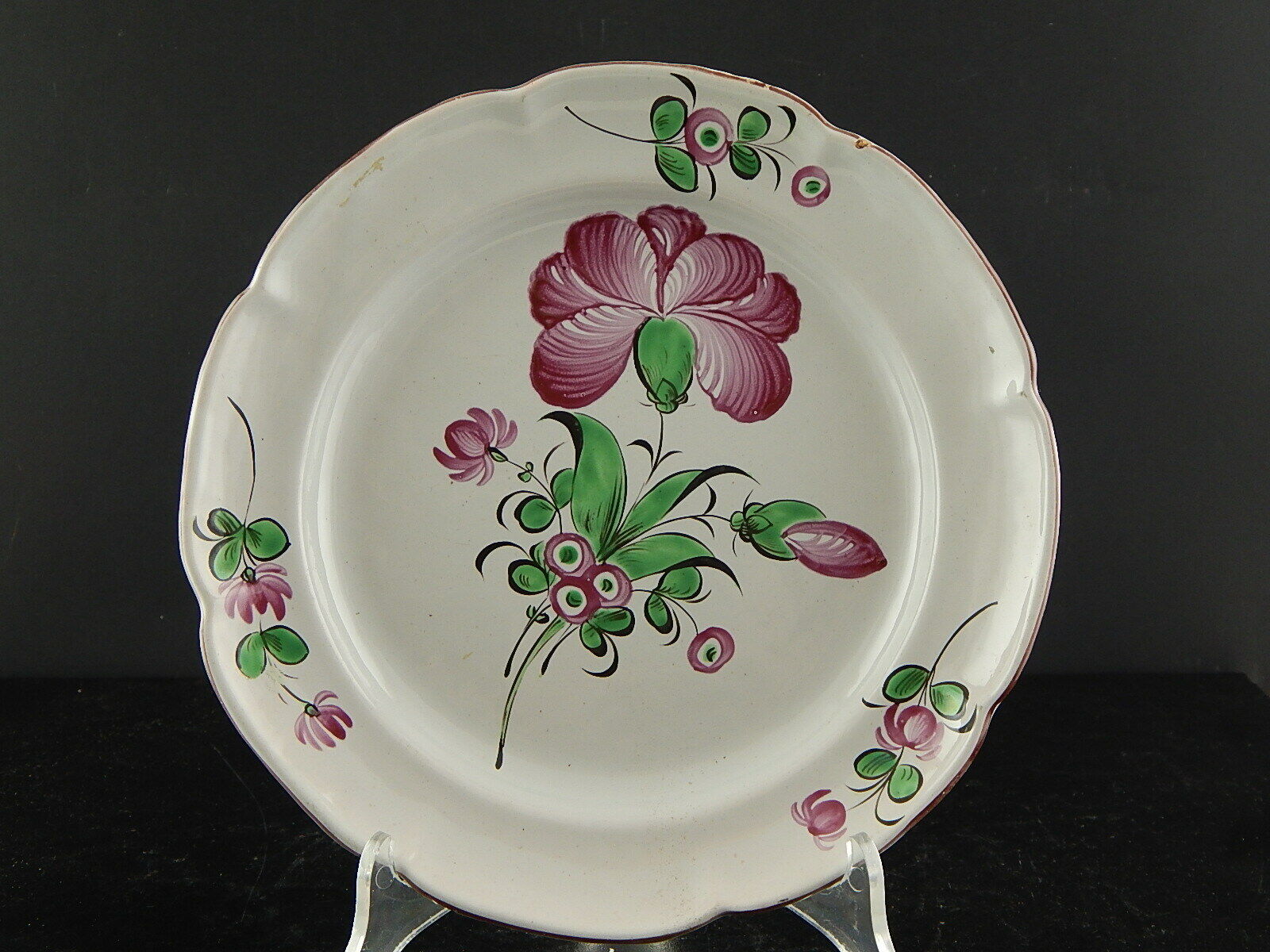 ANTICO 800 PIATTO CERAMICA MAIOLICA FIORI DIPINTI POLICROMI COLLEZIONE #6938