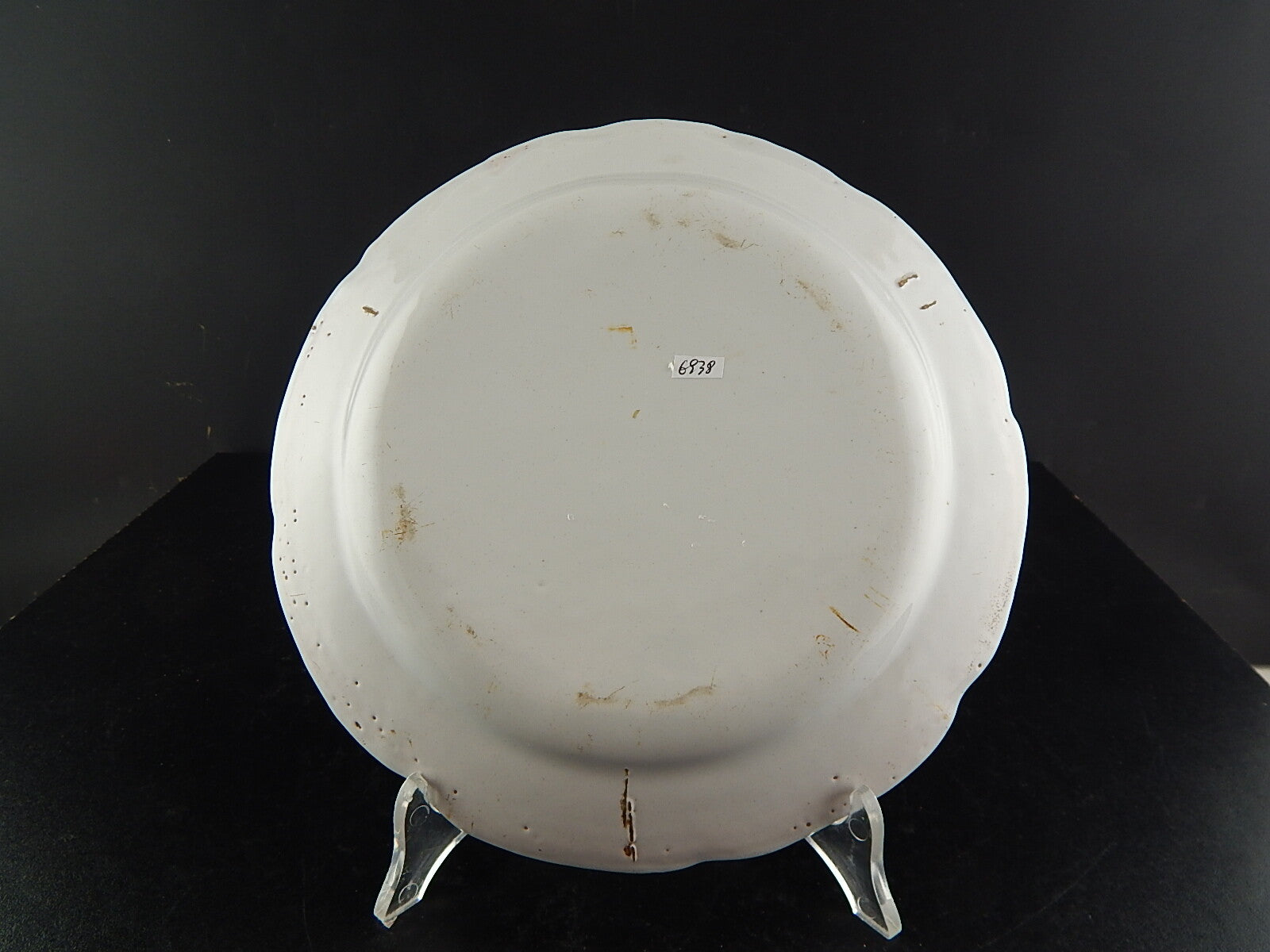 In questa inserzione viene presentato un piatto antico in maiolica decorato in policromia che misura 23 cm di diametro