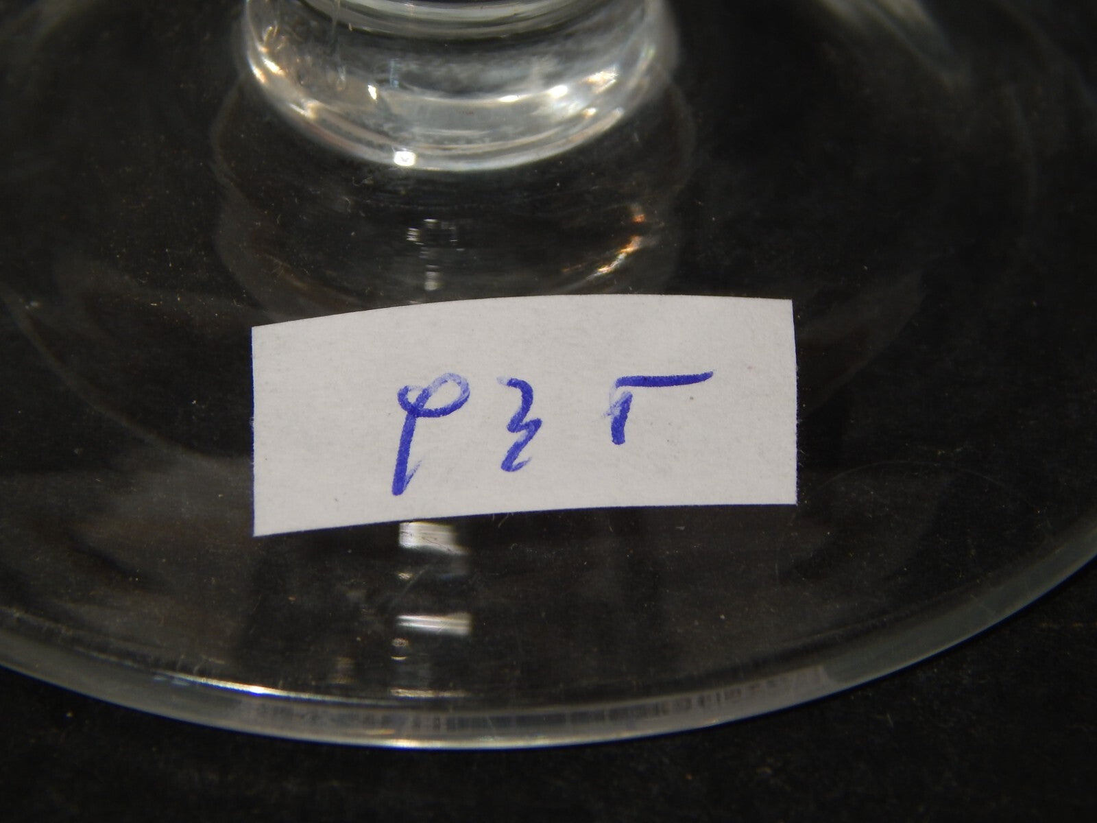 Il servizio è composto da 6 calici che misurano 15,6 cm di altezza e 9 cm di diametro, 6 calici che misurano 14,5 cm di altezza e 8 cm di diametro, e 6 calici che misurano 13,5 cm di altezza e 7 cm di diametro
