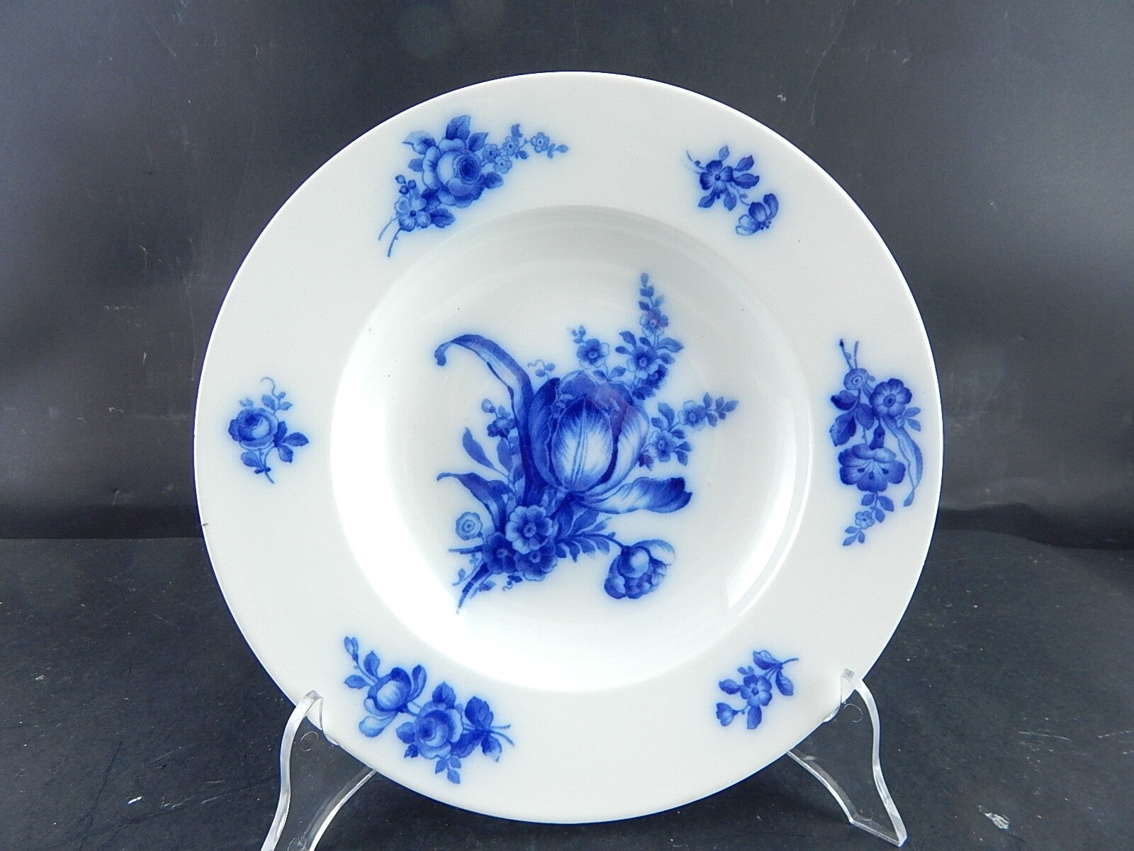 ANTICO ART DECO PIATTO FONDO VILLEROY&BOCH PORCELLANA BIANCA FIORI BLU