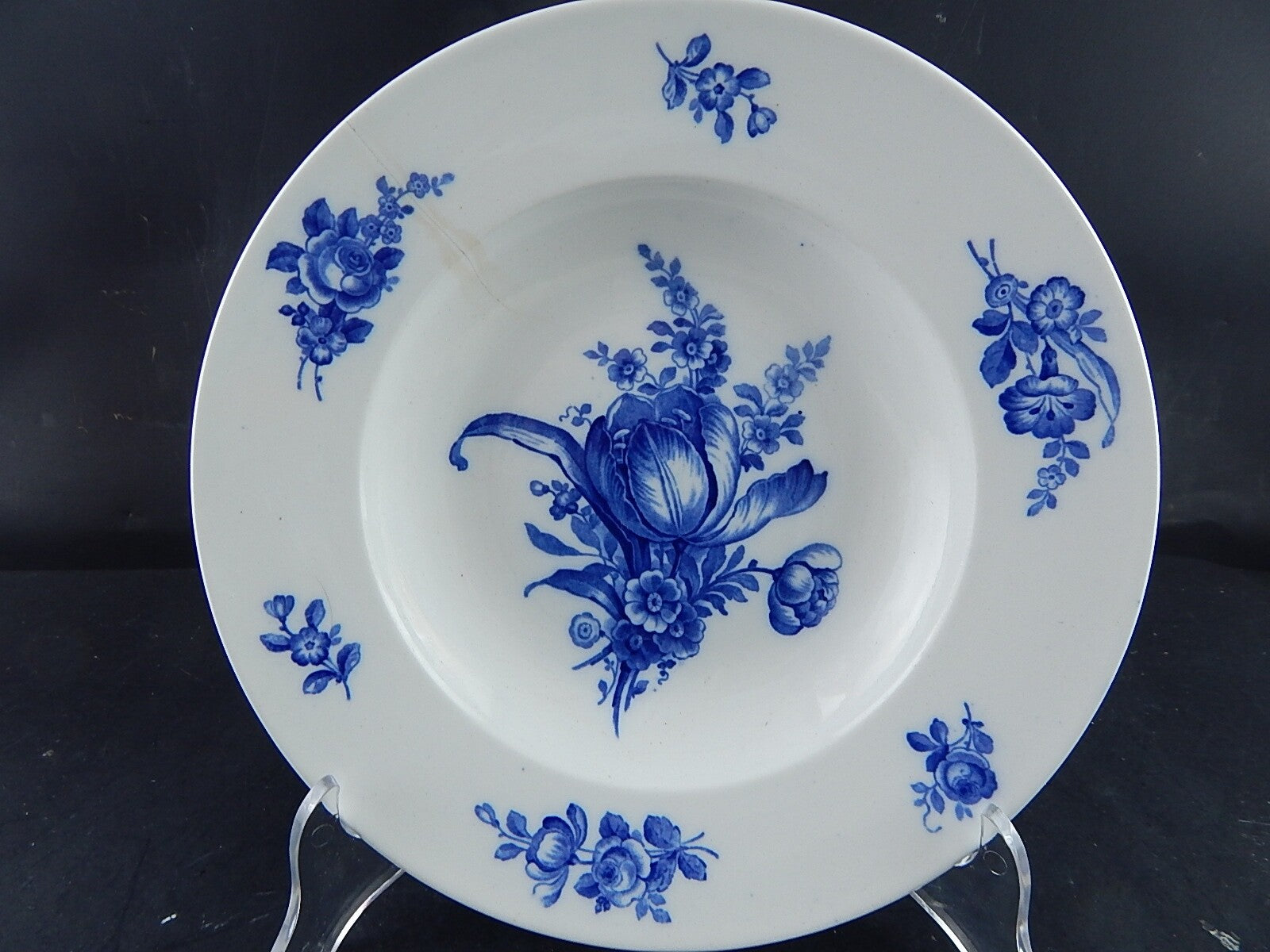 ANTICO ART DECO PIATTO FONDO VILLEROY&BOCH PORCELLANA BIANCA FIORI BLU #