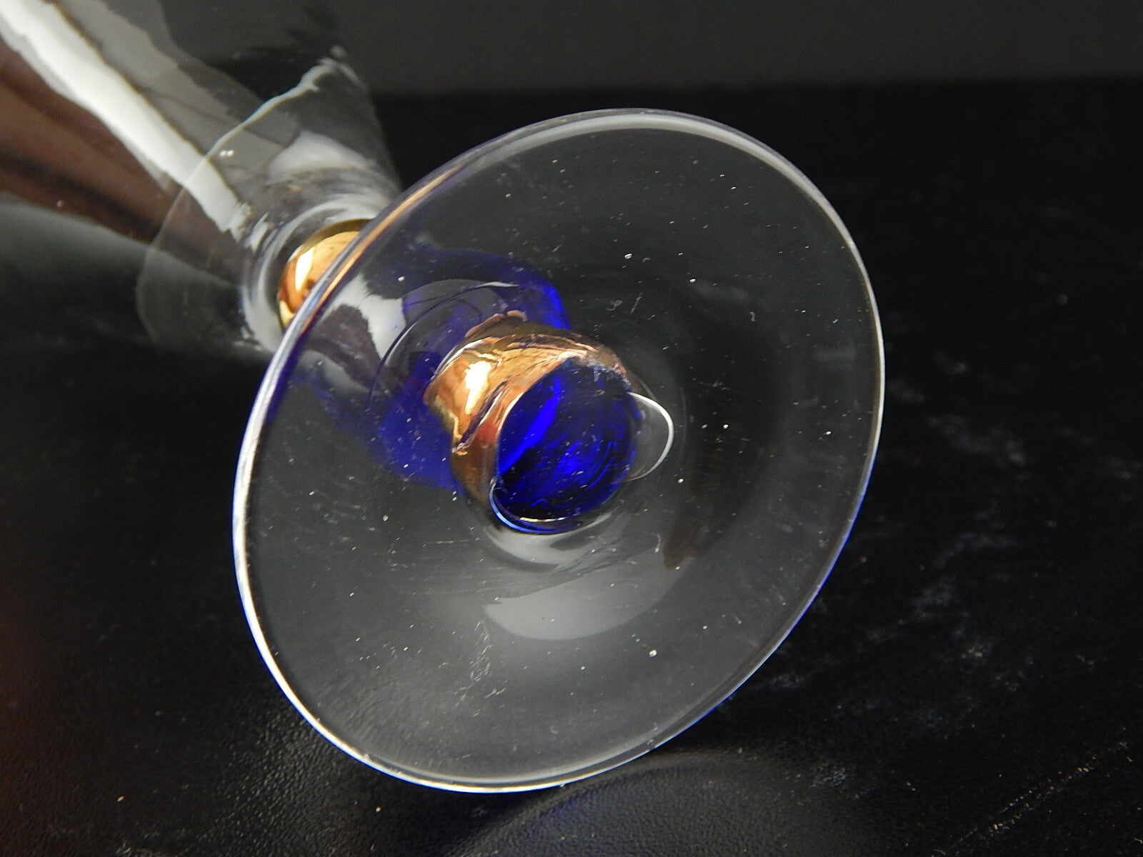ANTICO ART DECO PREZIOSO CALICE VETRO SOFFIATO MURANO BLU COBALTO ORO