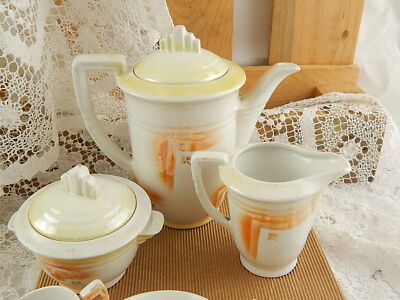 ANTICO ART DECO RARO SERVIZIO CAFFÈ’ CERAMICA LOMBARDA MARCHIO ELEFANTINO MUSEO
