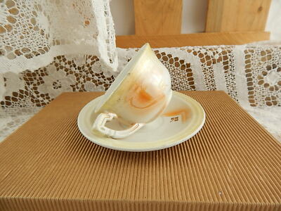 La tazzina misura 4,5 cm di altezza e 6,5 cm di diametro, il piattino misura 11 cm di diametro, per le condizioni osservate le foto, da segnalare una piccola scheggiatura sul bordo della tazzina è un difetto di cottura della ceramica sul piattino