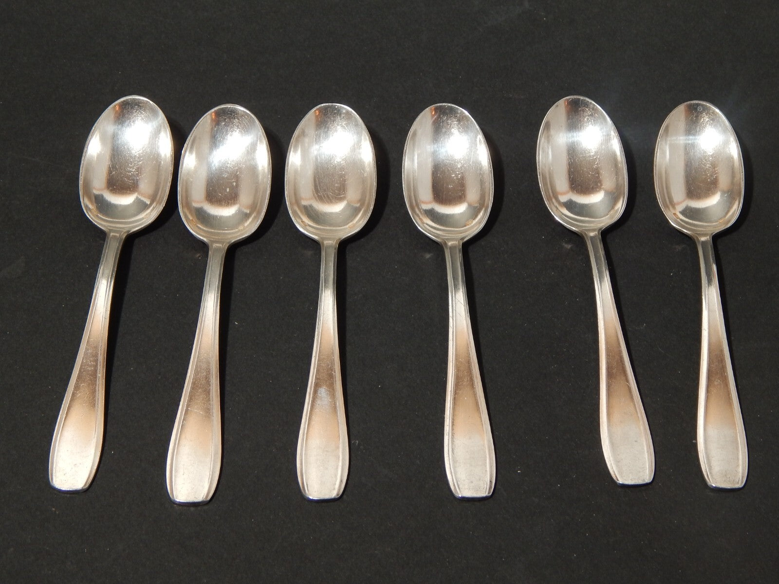 In questa inserzione viene presentato un set di posate argentate realizzate dall'argenteria francese Sfam composto da 6 cucchiai che misurano 21 cm di lunghezza, 6 forchette che misurano 21 cm di lunghezza e 6 cucchiaini che misurano 14 cm di lunghezza