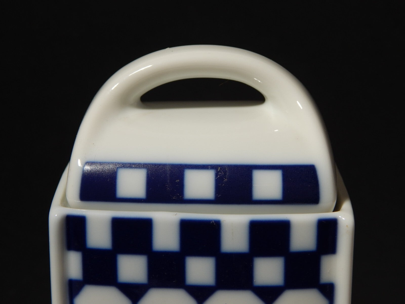 ANTICO ART DECO VASO BARATTOLO TE' PORCELLANA BIANCO BLU COBALTO ROYAL TETTAU