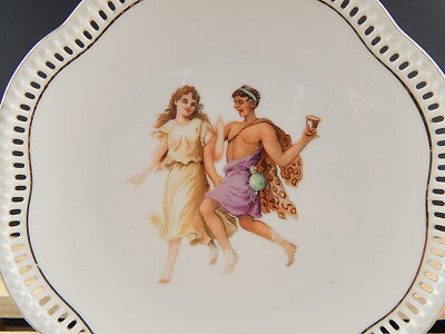 ANTICO ART NOUVEAU PREZIOSO PIATTO TRAFORATO PORCELLANA SCHUMANN 1920 BAVARIA #