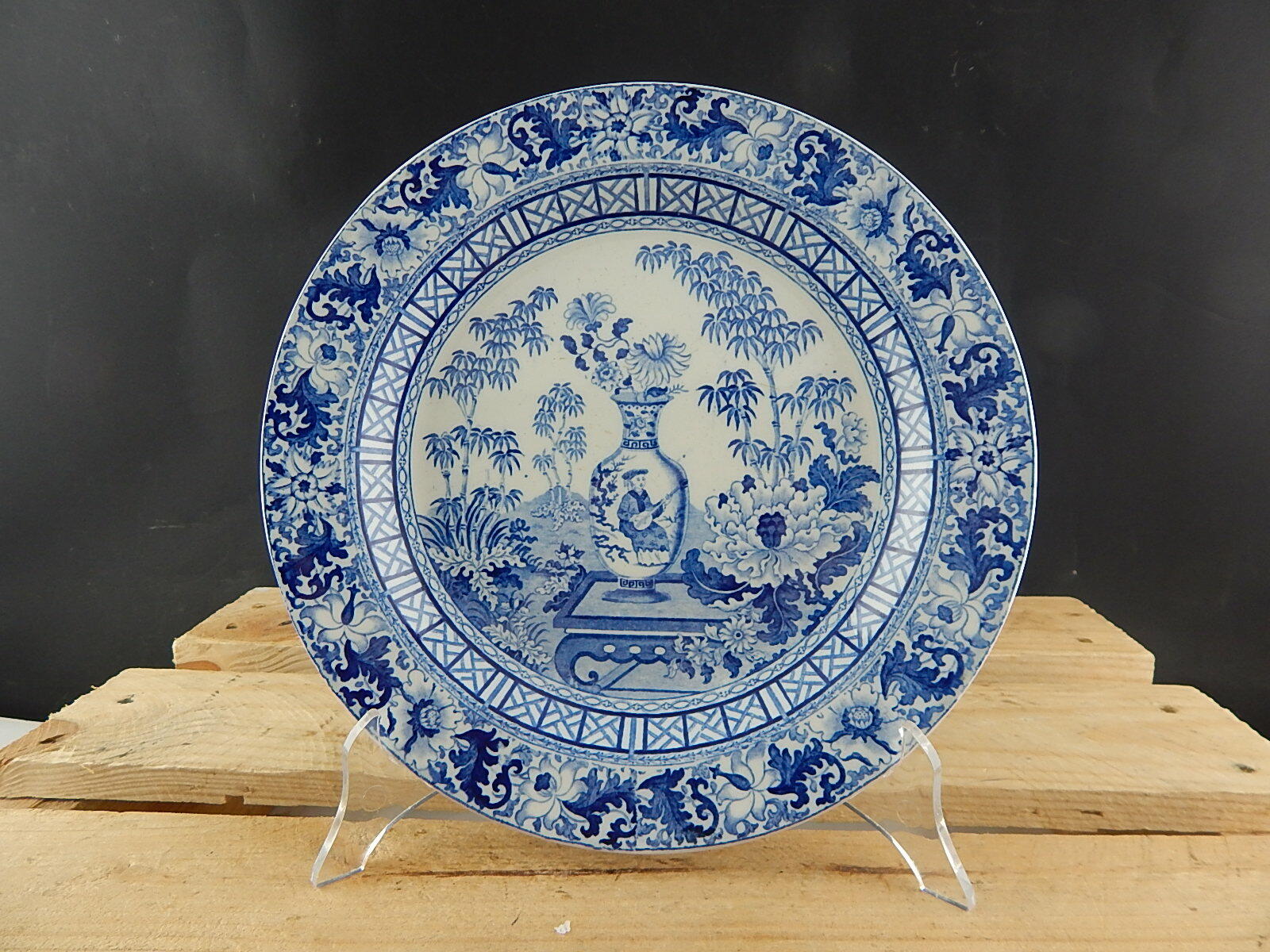 ANTICO RARO PIATTO PORCELLANA WEDGWOOD DEL 1864 "BLUE BAMBOO"