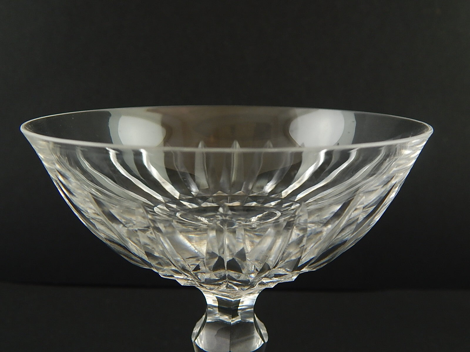 In questa inserzione viene presentato un antico bicchiere di cristallo o coppa da champagne pesante e molato realizzata dalla famosa cristalleria francese Saint Louis.