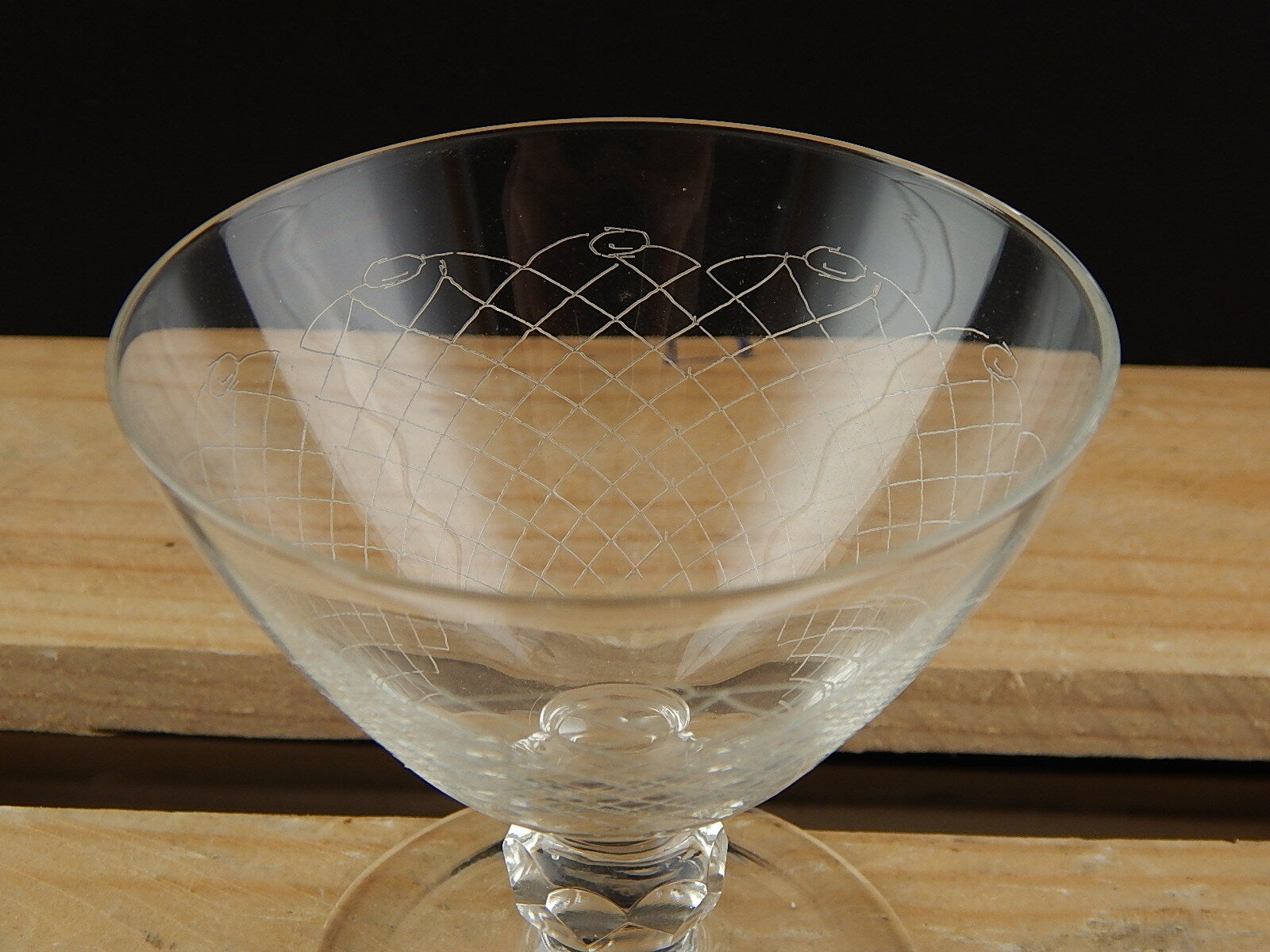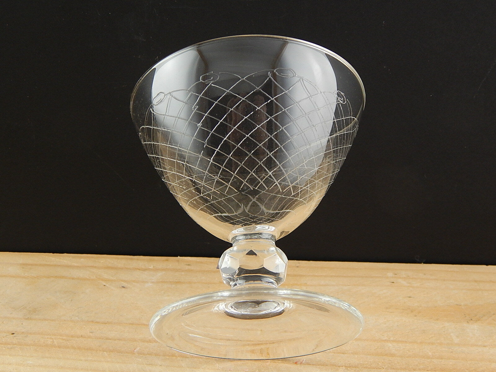 In questa inserzione viene presentato un antico bicchiere a calice di cristallo inciso a punta di diamante dei primi decenni del 1900