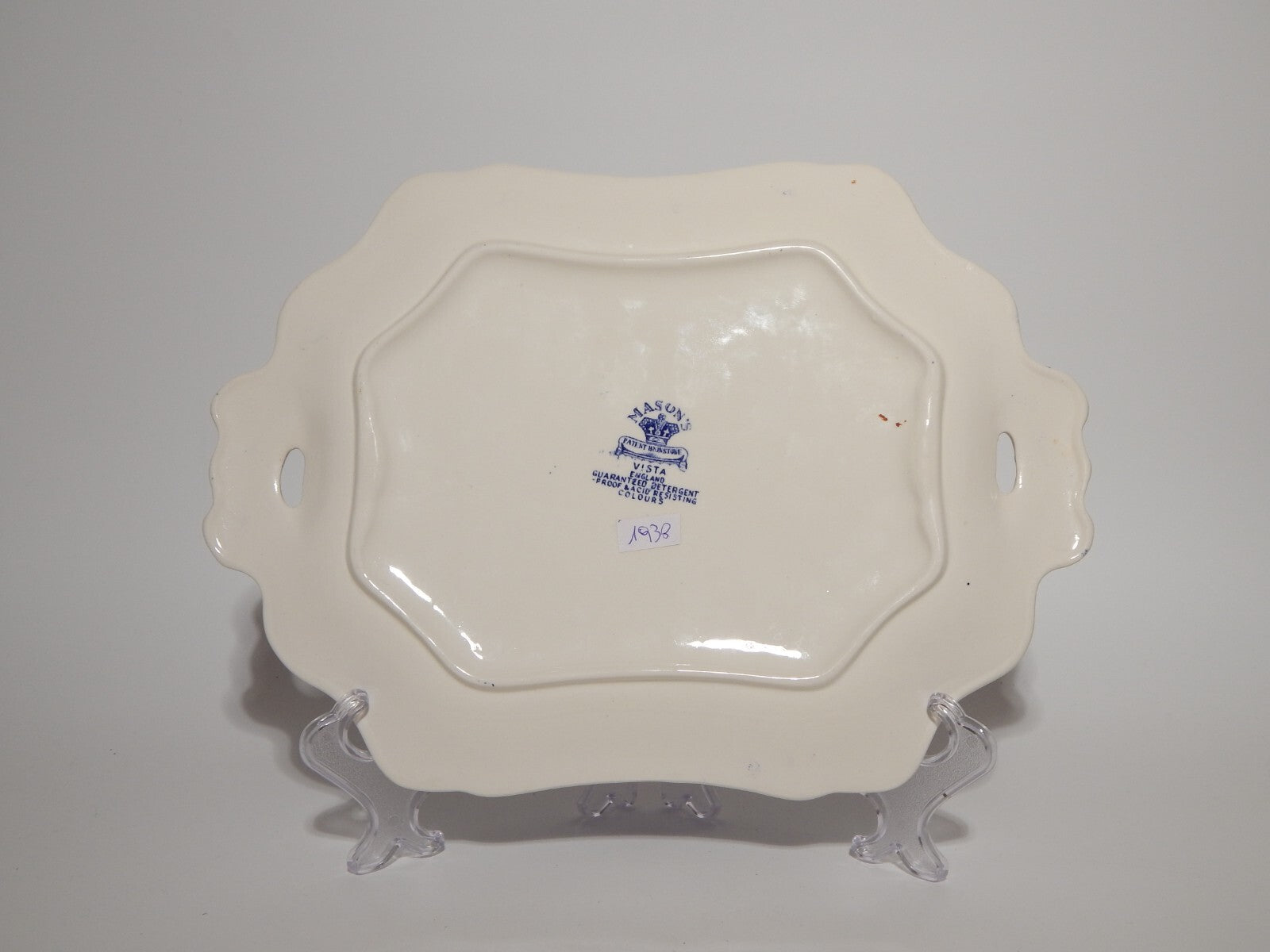 In questa inserzione viene presentato un antico centrotavola in ceramica o semi porcellana realizzato dalla rinomata manifattura inglese Mason’s nel famoso decoro Vista