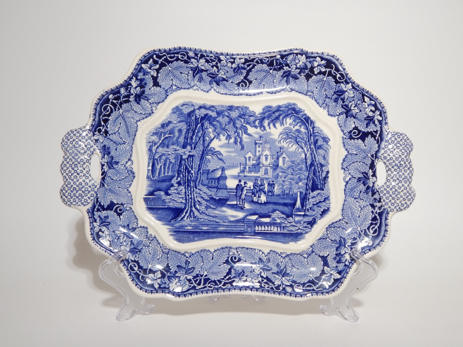 ANTICO CENTROTAVOLA FRUTTIERA CERAMICA INGLESE MASON’S DECORO VISTA BIANCO BLU