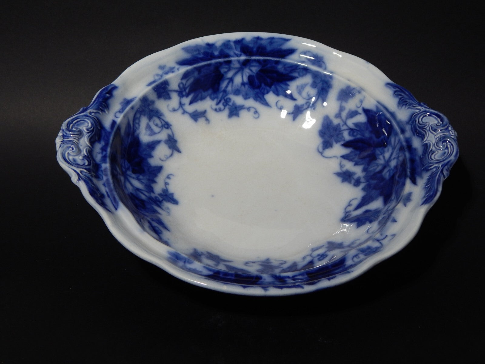 In questa inserzione viene presentata un'antica fruttiera in ceramica realizzata dalla manifattura francese Sarreguemines. La fruttiera è stata realizzata a metà del 1800, decorata con la tecnica del blue flow nel famoso disegno Bryonia