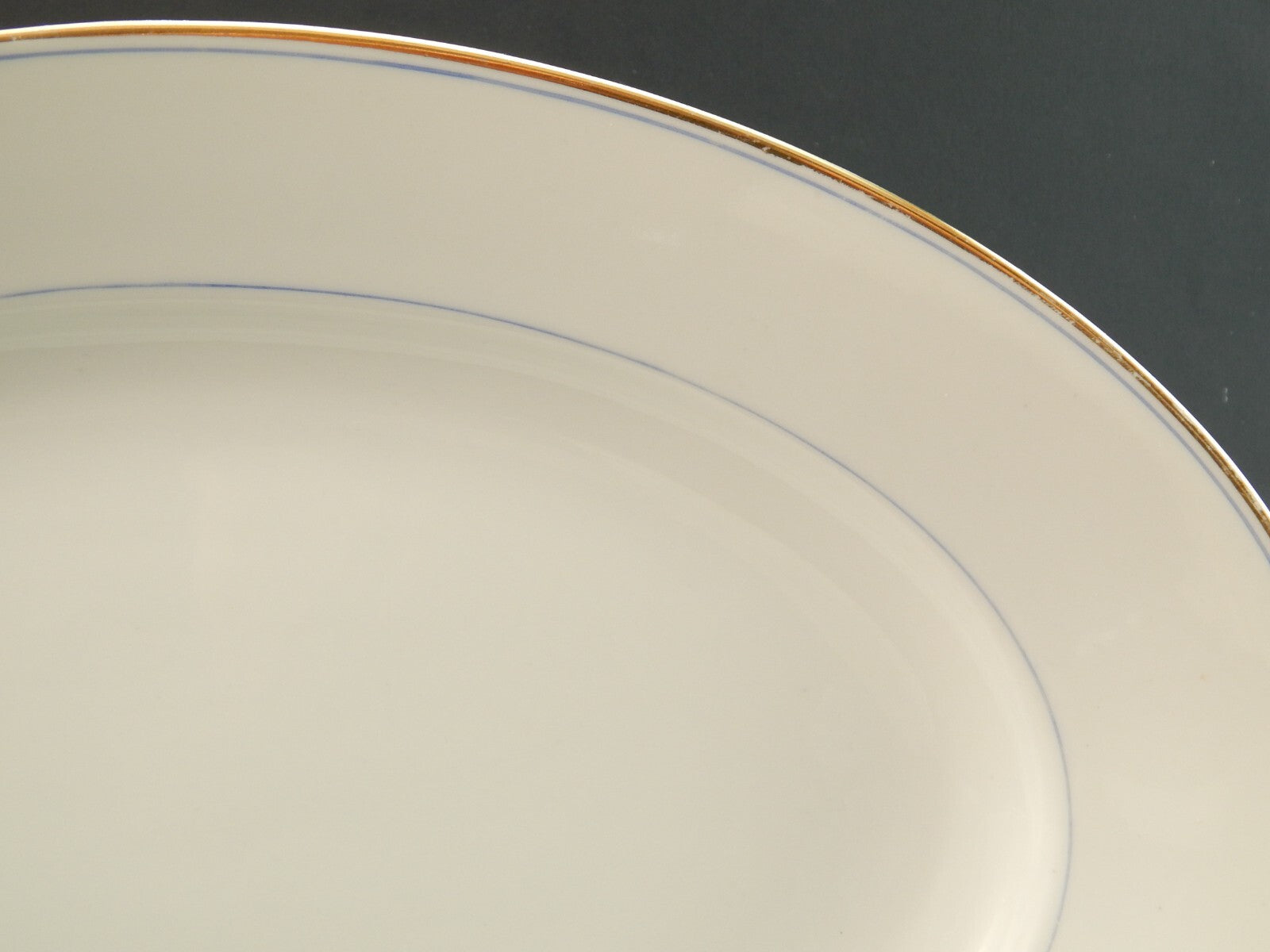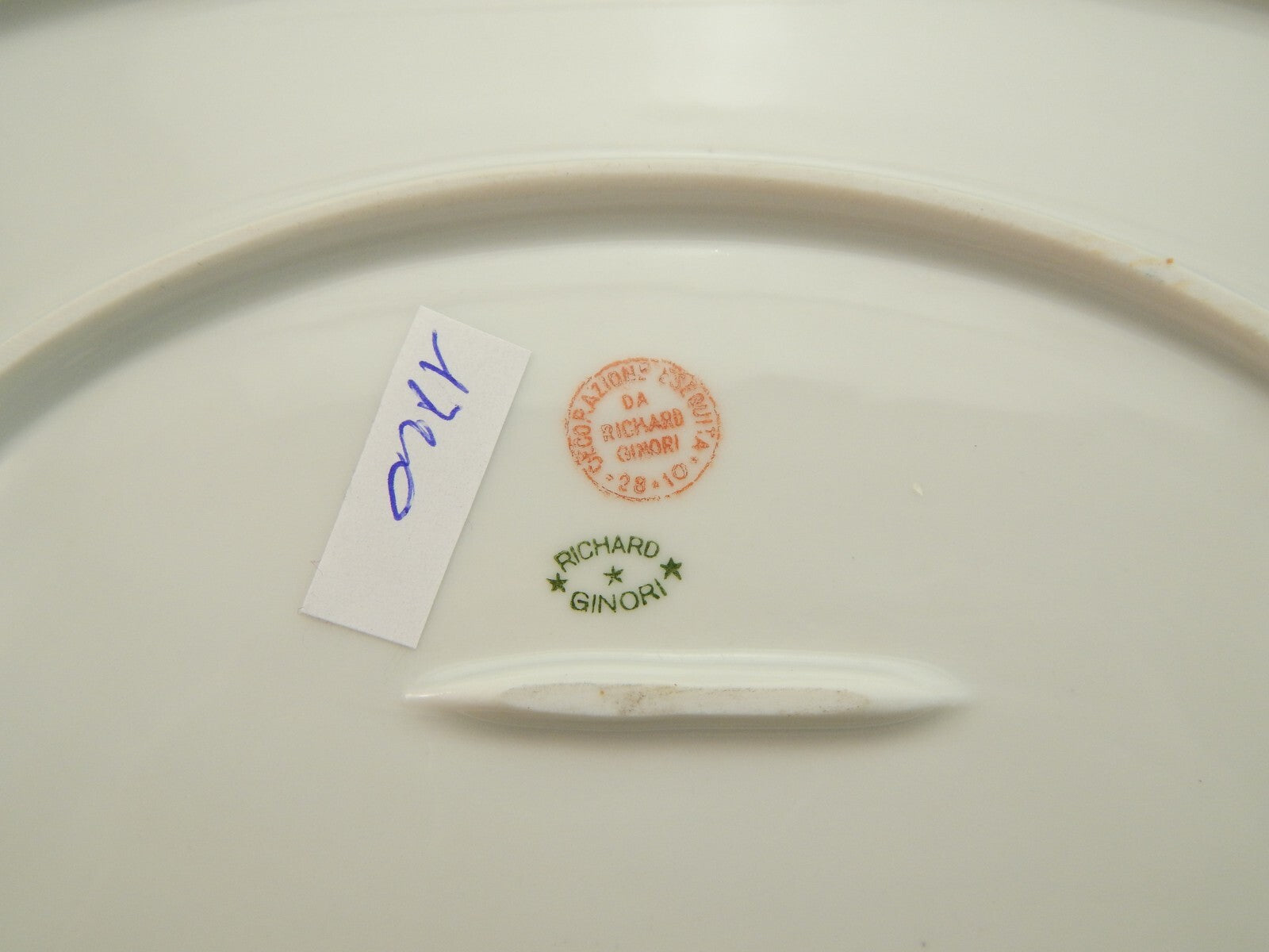 ANTICO DEL 1929 VASSOIO OVALE PORCELLANA RICHARD GINORI PROFILO BLU E ORO