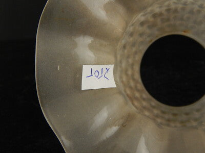 In questa inserzione viene presentato una tulip o paralume in vetro satinato decorato con bolle in rilievo risalente ai primi decenni del 1900.