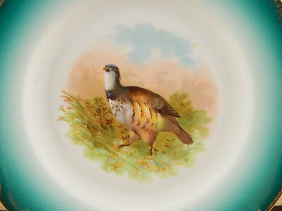 COLLEZIONE FINE 800 PIATTO PORCELLANA AUSTRIA VIENNA VERDE E ORO DIPINTO QUAGLIA