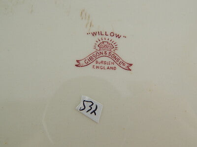 ANTICO VASSOIO 1930 CERAMICA INGLESE DECORO WILLOW ROSSO GIBSON&SONS BURSLEM