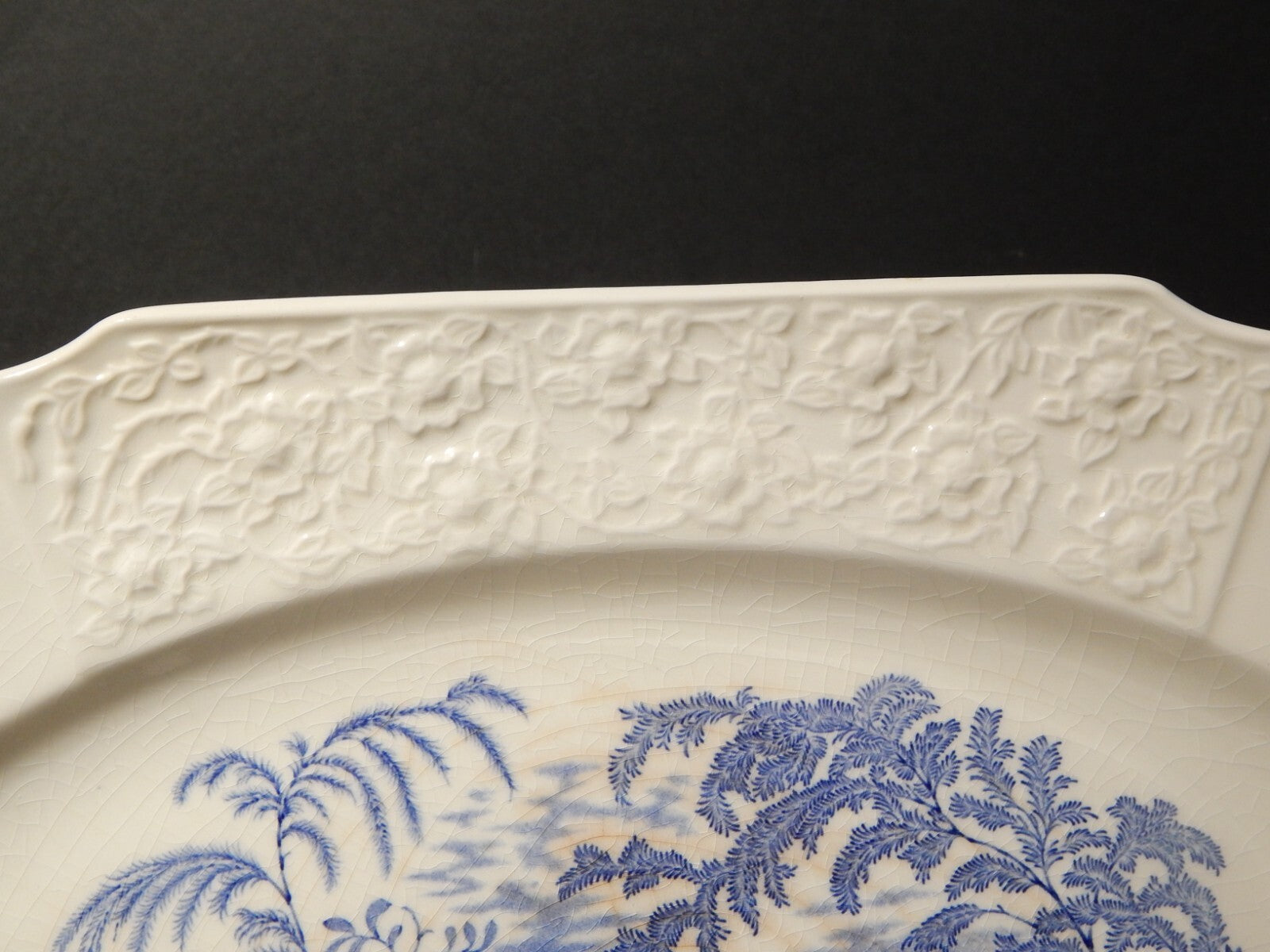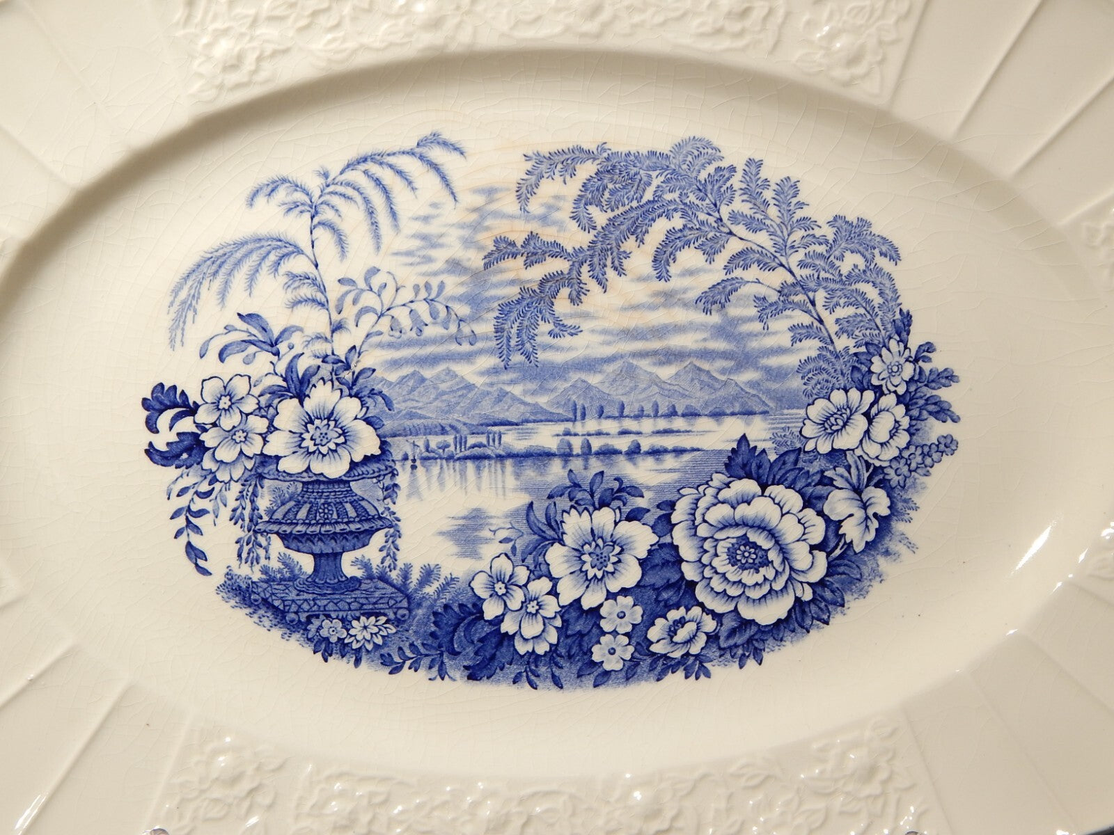 ANTICO GRANDE VASSOIO CERAMICA MYOTT SON & CO STAFFORDSHIRE ENGLAND BANFF BIANCO BLU