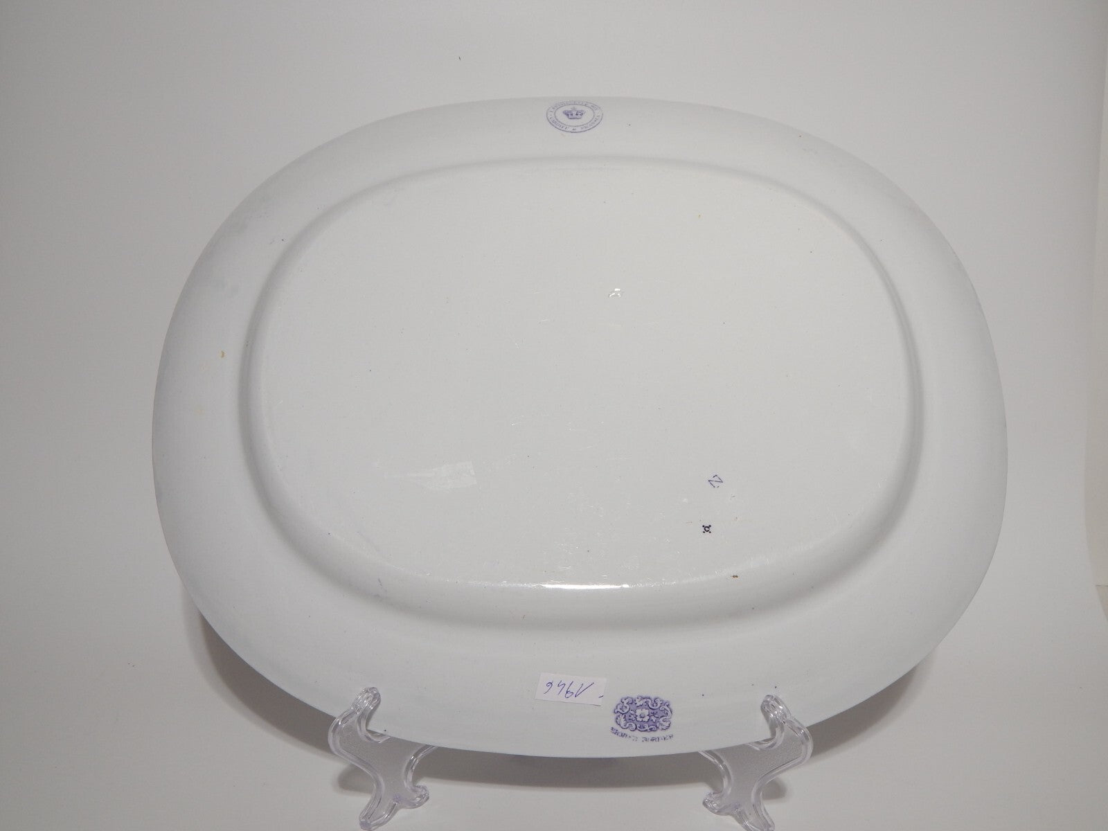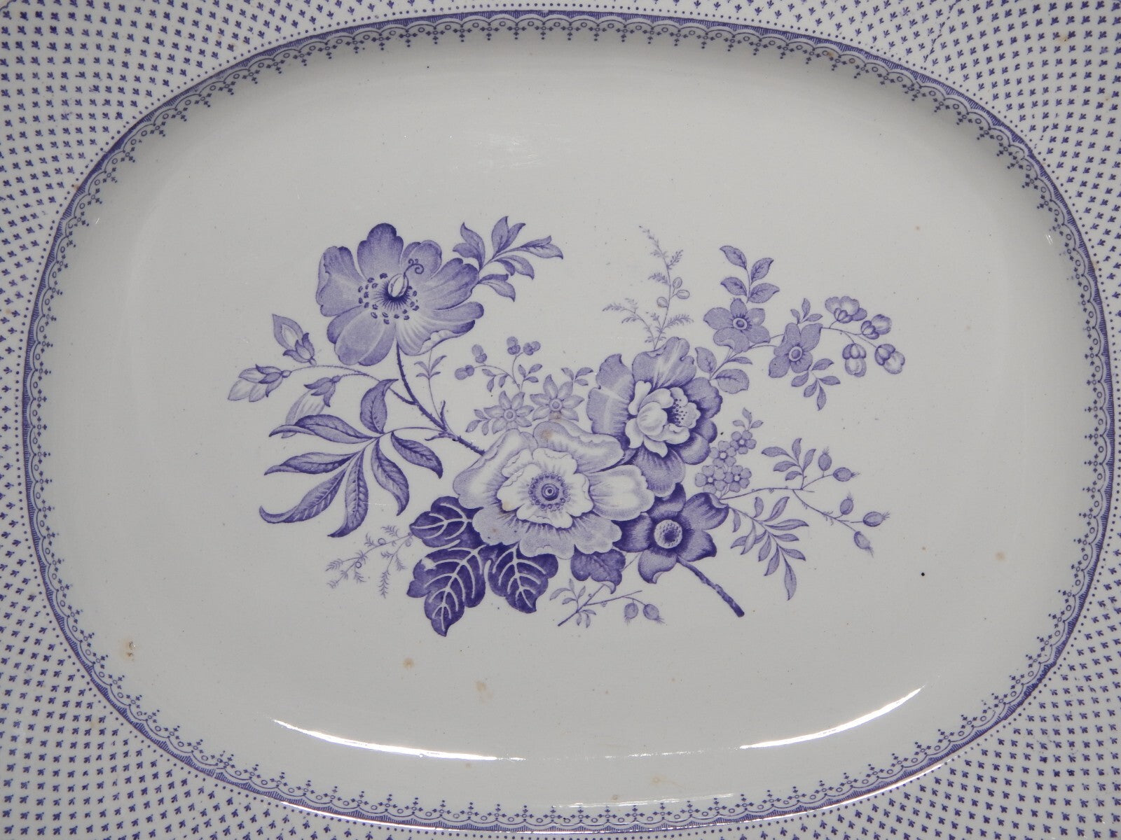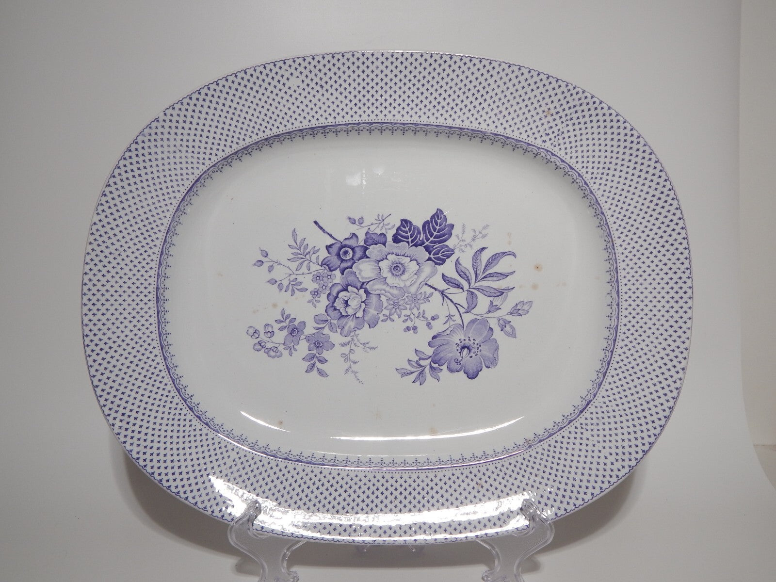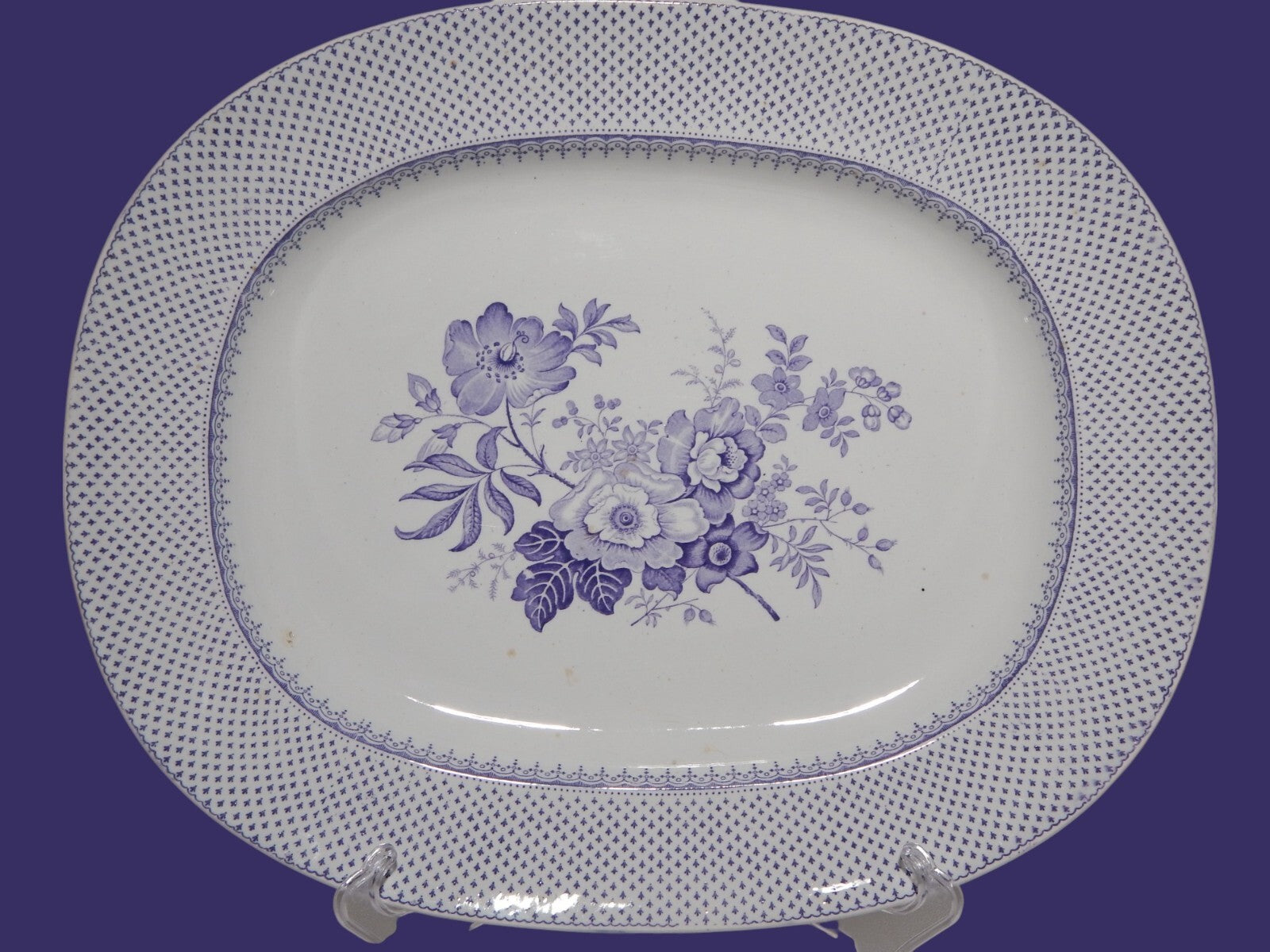 ANTICO GRANDE VASSOIO CERAMICA STAFFORDSHIRE PRIMAVESI 1860 ERMINE BORDER VIOLA