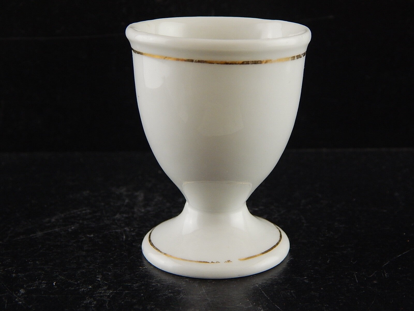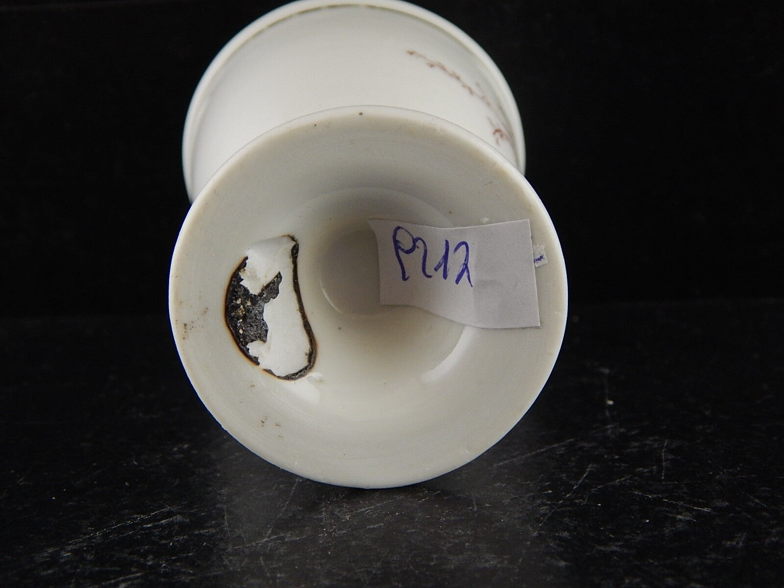 Il porta uovo in porcellana bianca con decoro policromo dipinto a mano e profili in oro zecchino misura 4,7 cm di diametro e 6 cm di altezza