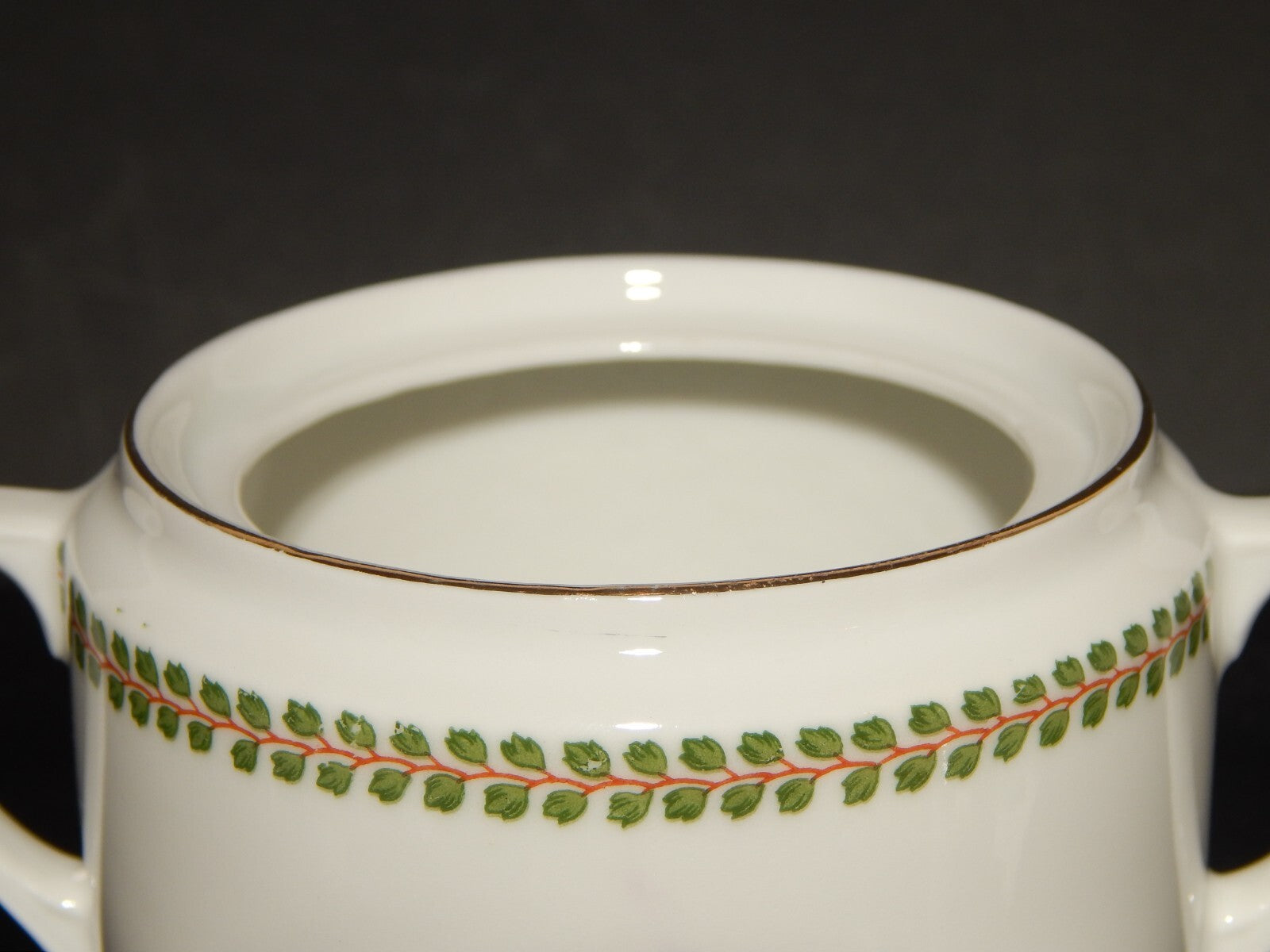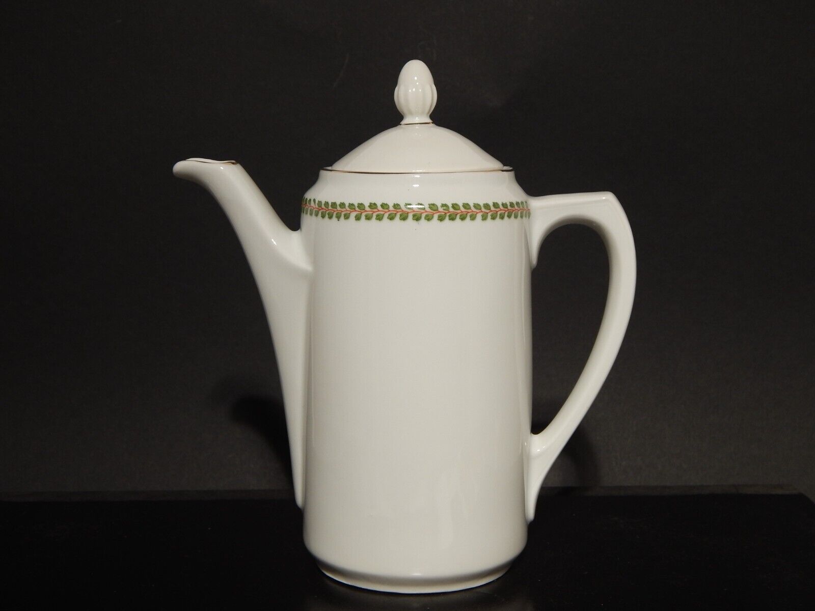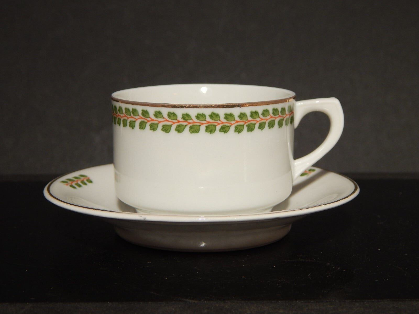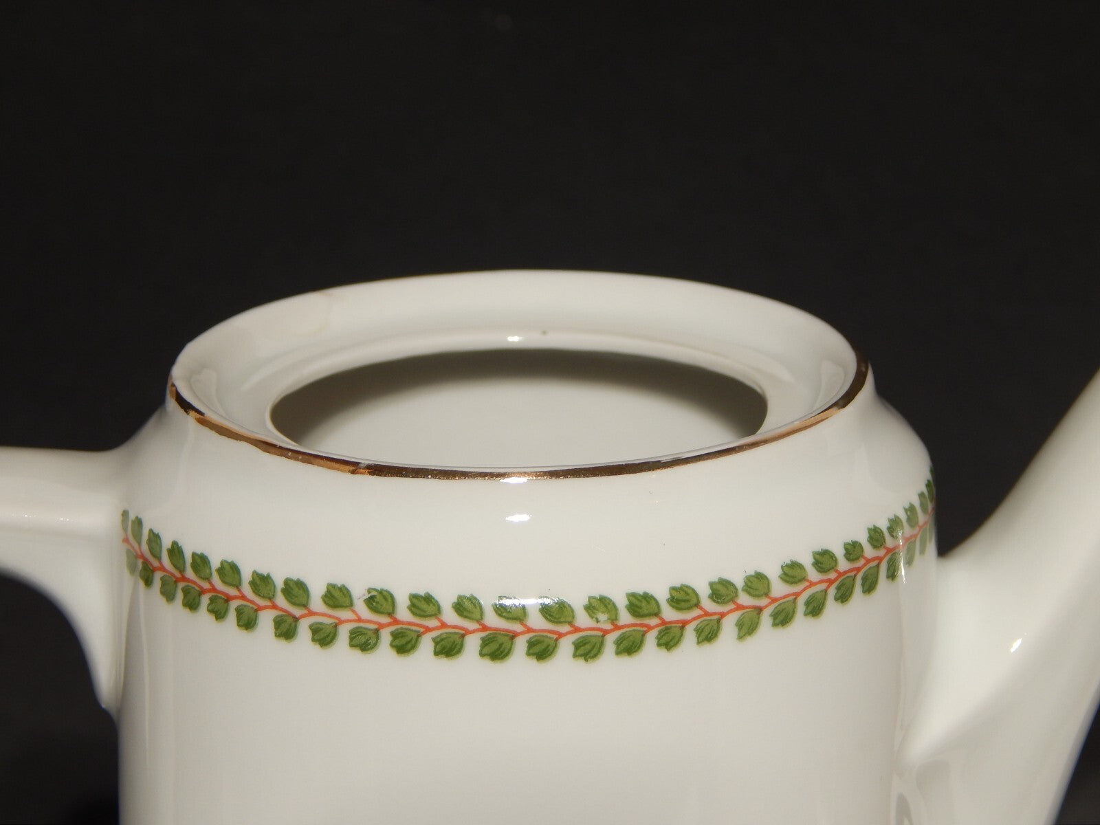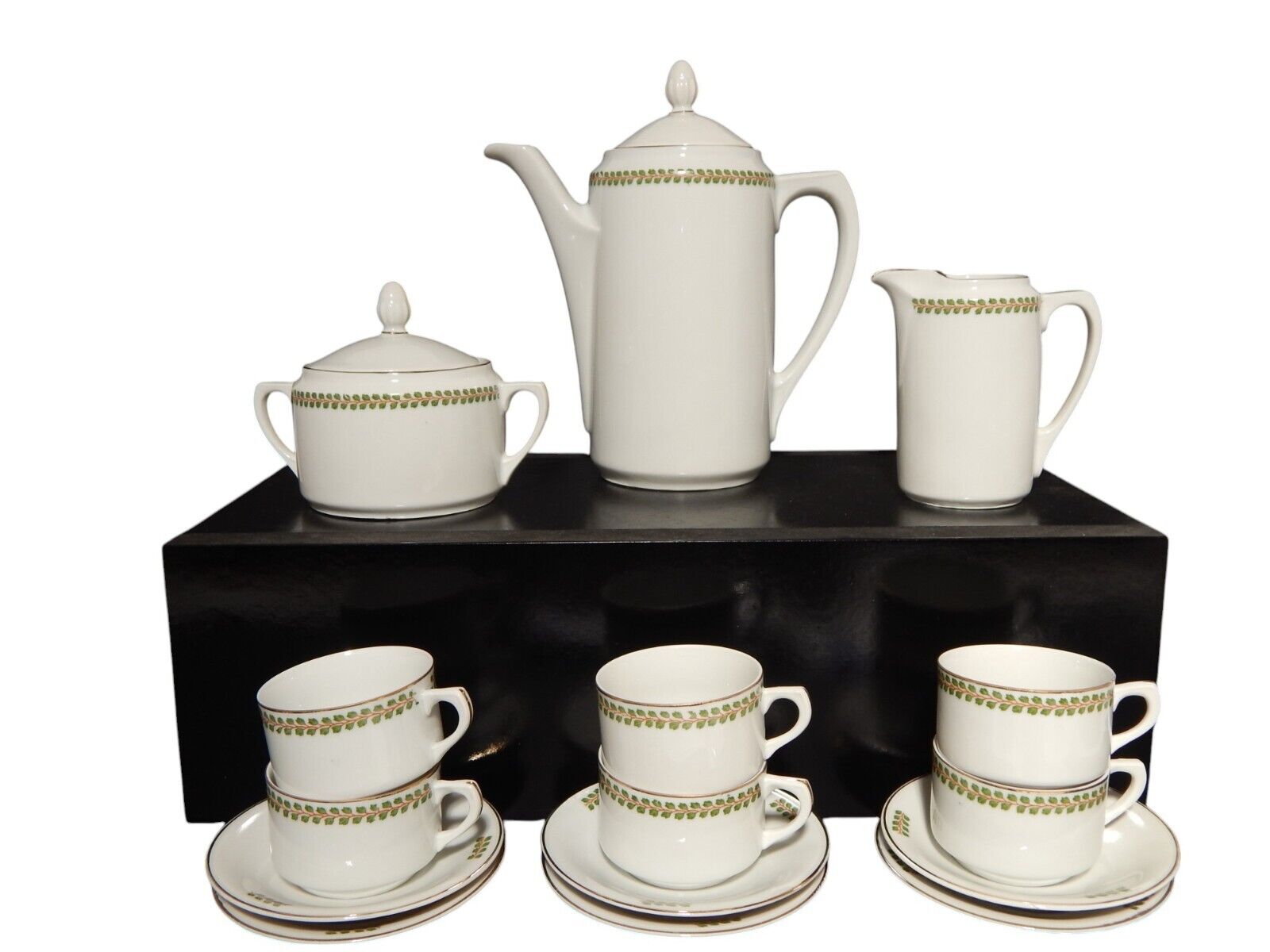 ANTICO IMPERO SERVIZIO CAFFÈ PORCELLANA BIANCA GHIRLANDE PICCOLE FOGLIE VERDI
