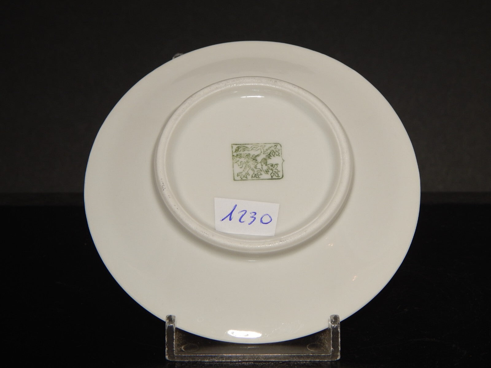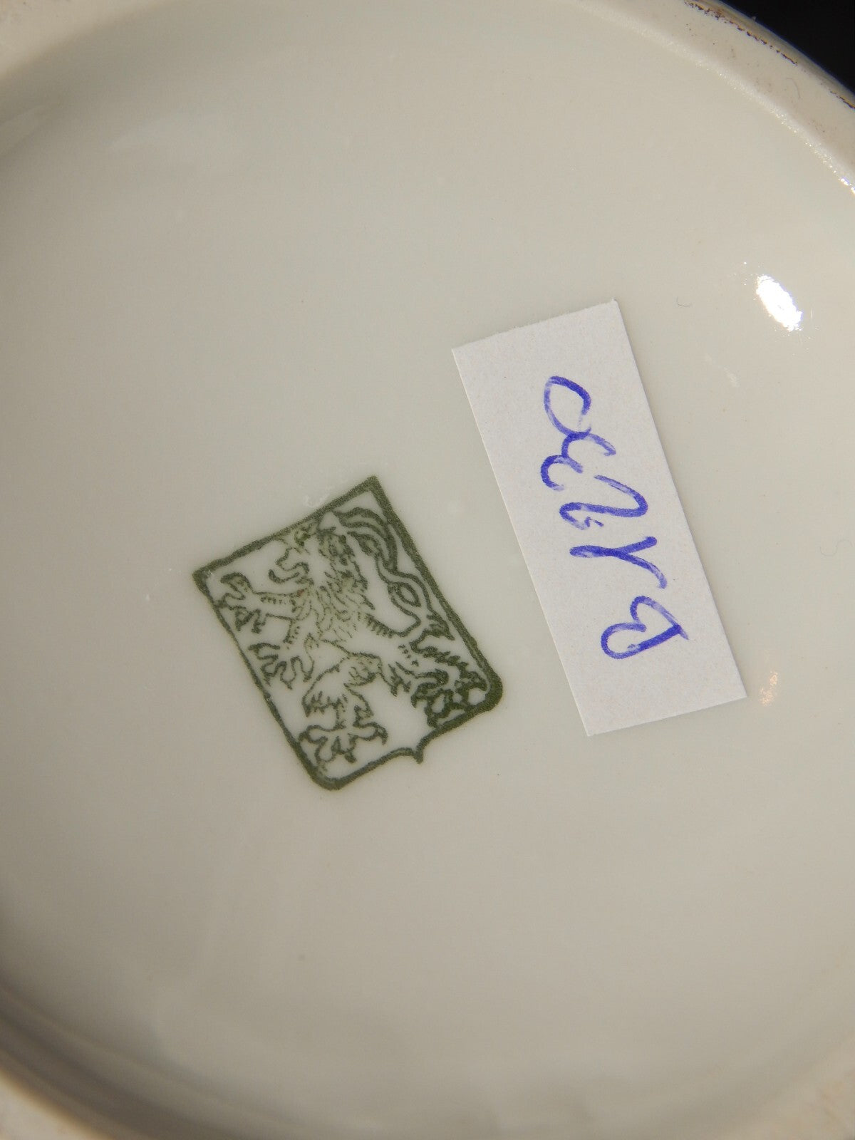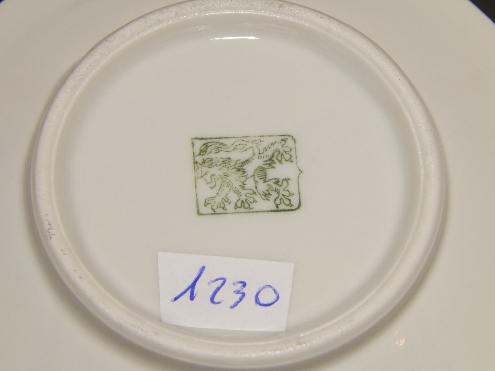 Il servizio di porcellana di ottima qualità reca un marchio che non siamo riusciti a identificare, sappiamo però che il decoro è stato usato sia dalla manifattura Richard Ginori che dalla manifattura tedesca Thomas appartenente al gruppo Rosenthal