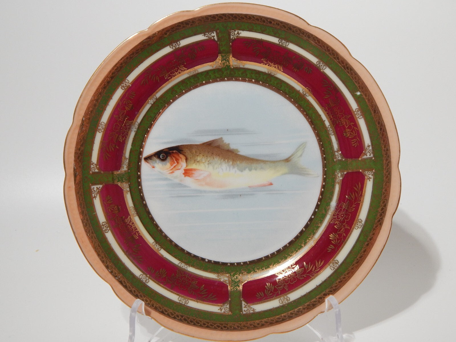 ANTICO IMPORTANTE SET 6 PIATTI PESCE STILE PORCELLANA IMPERIALE VIENNA AUSTRIA