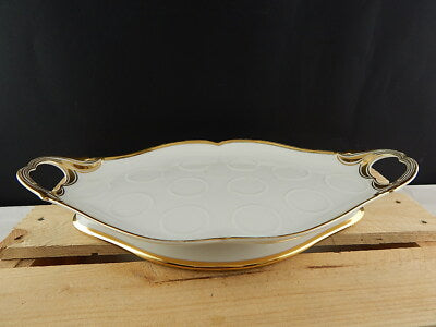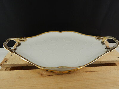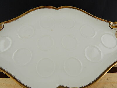 ANTICO IMPORTANTE VASSOIO CON MANICI IMPERO PORCELLANA BIANCA DECORO ORO1800
