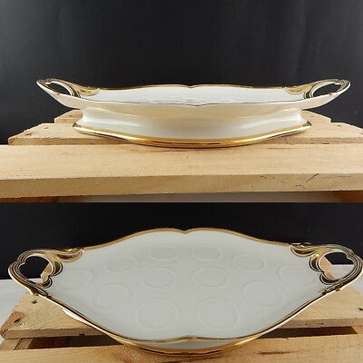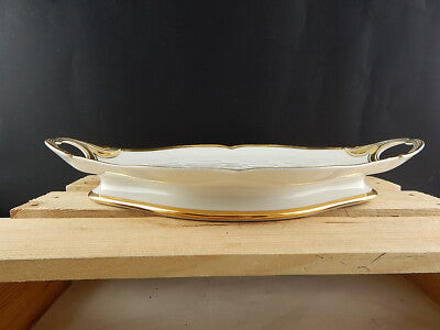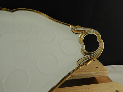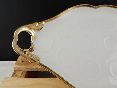 In questa inserzione viene presentata un antico vassoio con manici realizzato in porcellana bianca con decoro in oro zecchino a metà del 1800