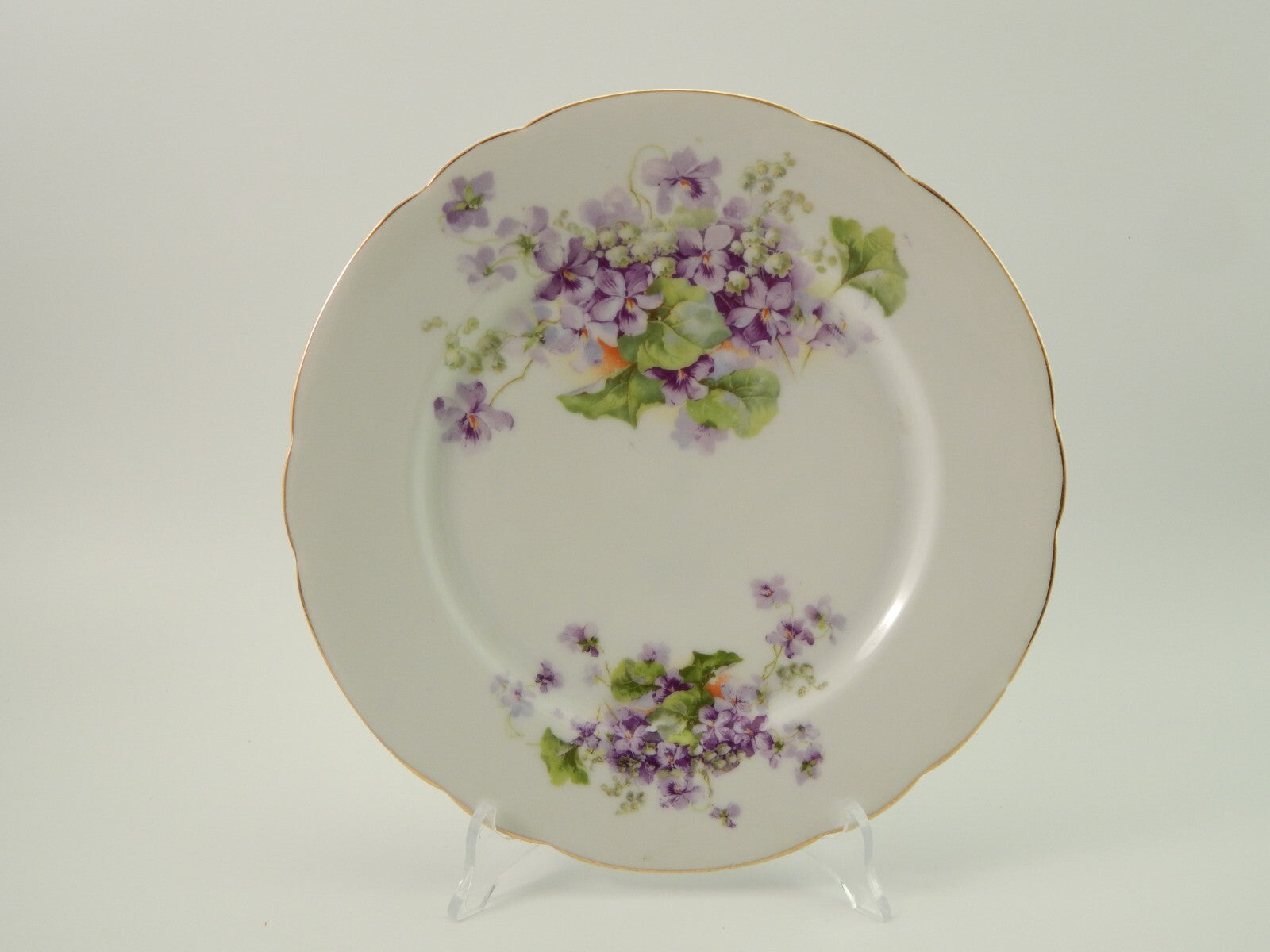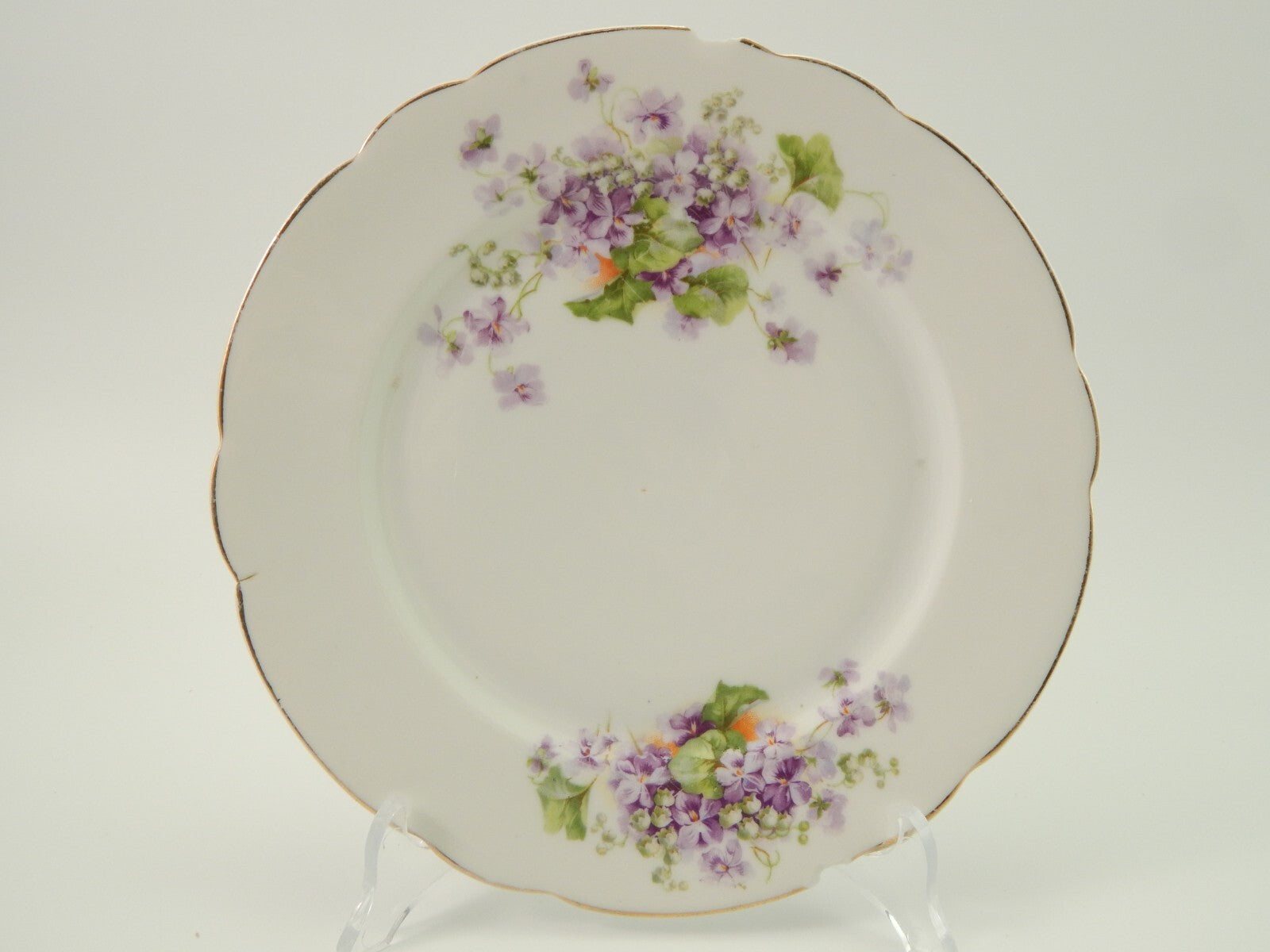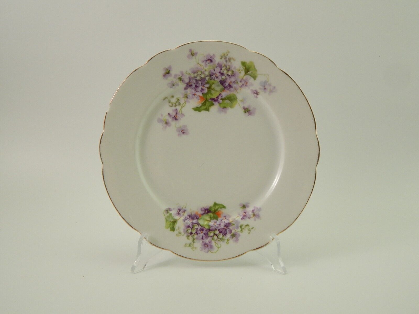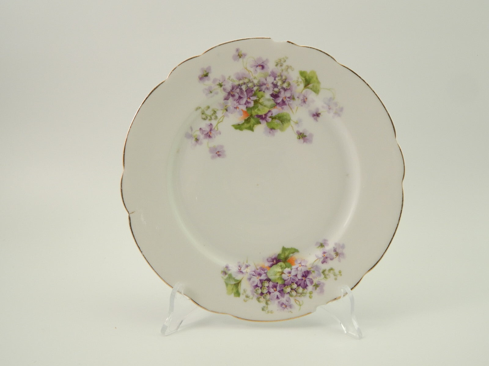 ANTICO LOTTO 6 PIATTI LIBERTY PORCELLANA BAVARIA VIOLETTE FINE 800 CON DIFETTI