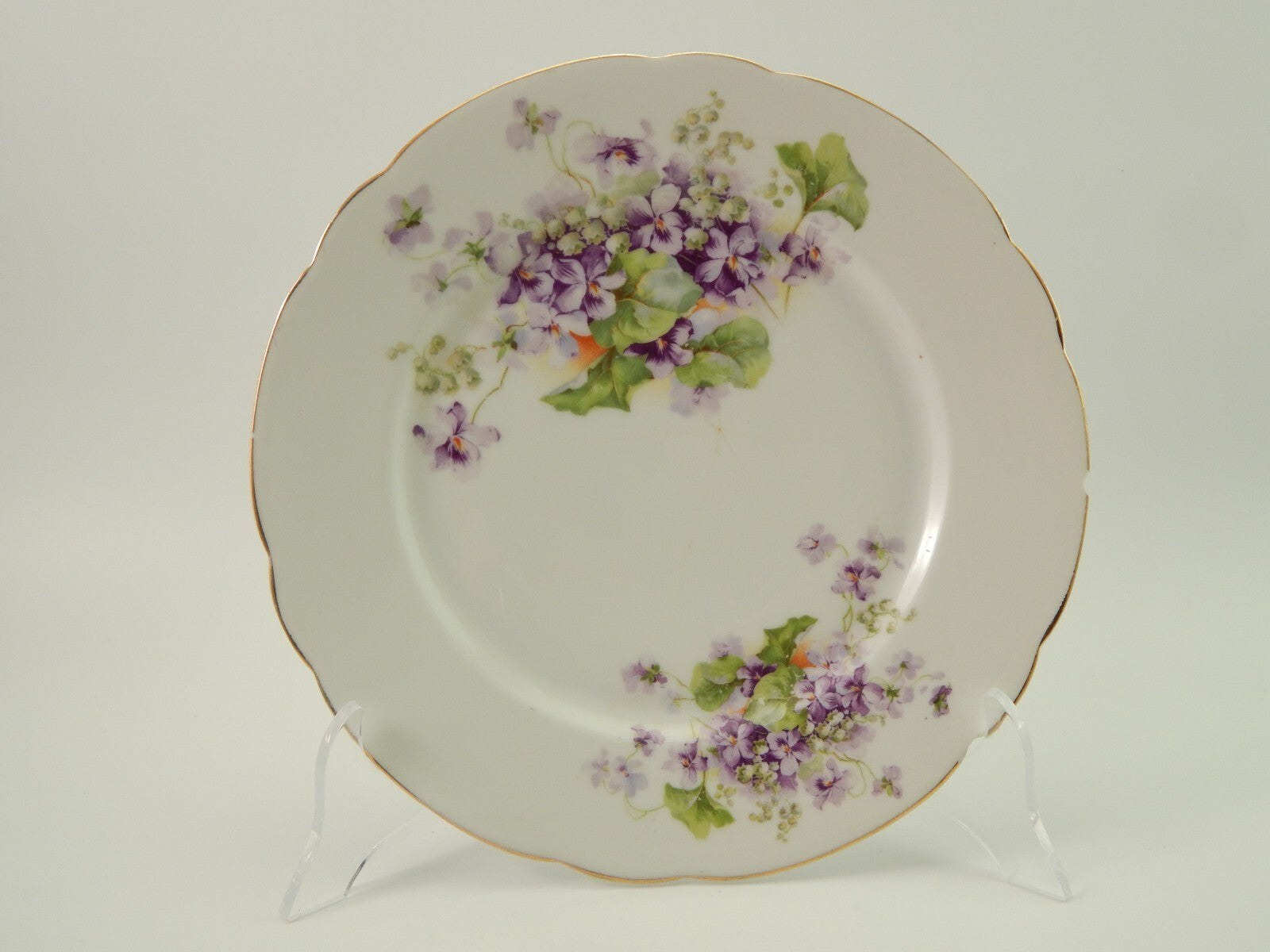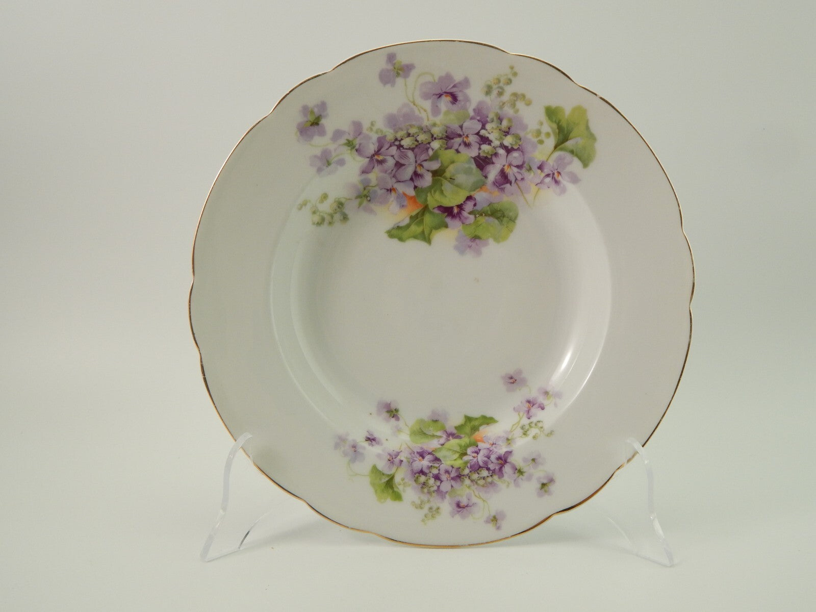I piatti sono stati decorati a mano con delicatissime violette: 3 piatti piani che misurano 24,5 cm di diametro, 1 piatto fondo che misura 24 cm di diametro e 2 piatti da dessert che misurano 20,5 cm di diametro