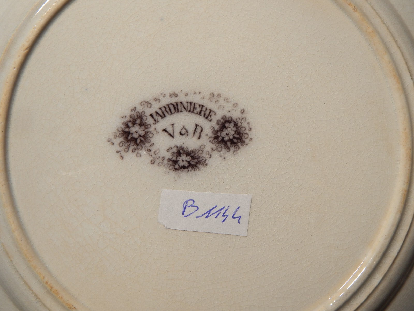 In questa inserzione viene presentato un antico piatto piano in ceramica di fine 1800 realizzato dalla rinomata manifattura Villeroy& Boch nel disegno Jardiniere