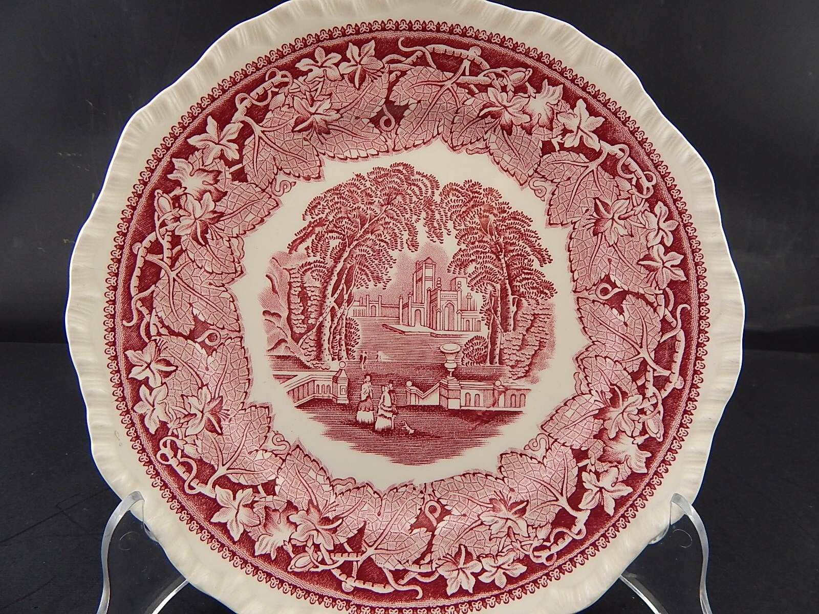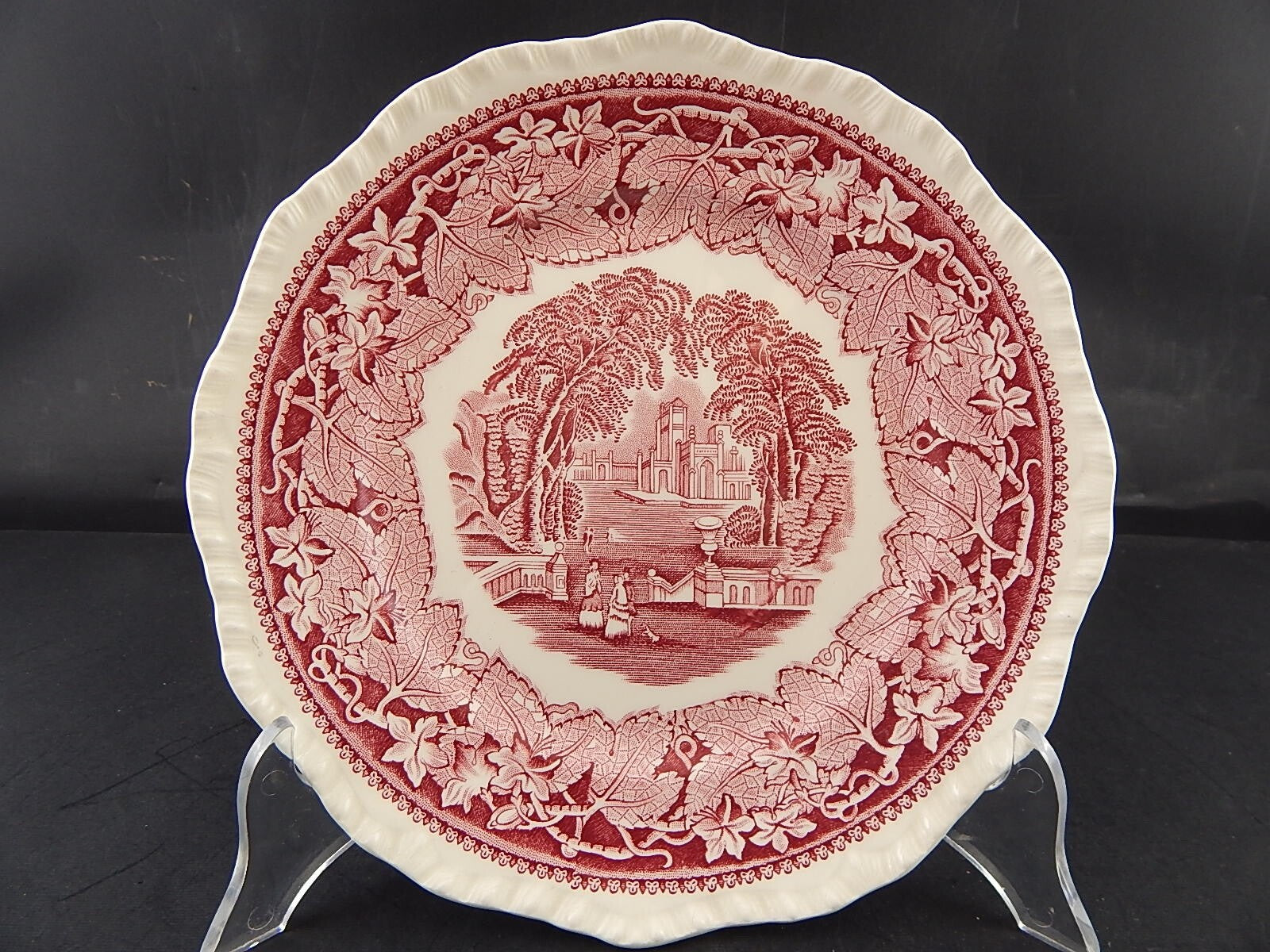 ANTICO PIATTO CERAMICA INGLESE MASON’S DECORO VISTA BIANCO ROSSO CM 23